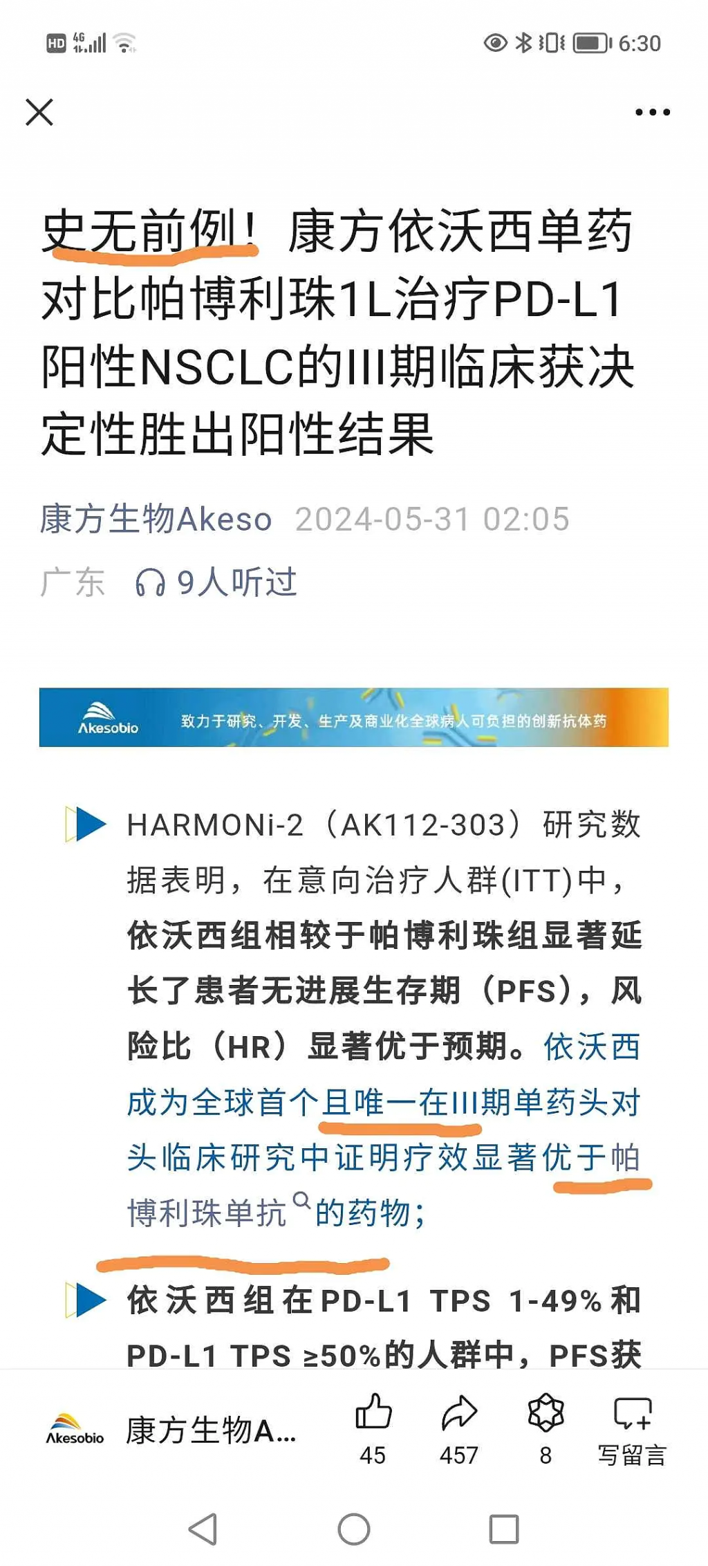 康方周5暴跌的事情,众说纷纭,面上的原因是说3期数据不及预期(同时有4个重要的3期临床试验,这是其中的一个),管理层也有官方回应,各路大V或顶或踩,我们也很迷惑。无论如何,等后面头对头K药数据读出,Summit老板首付款5亿美金都豪赌了,我既然在船上了,选择共存亡。