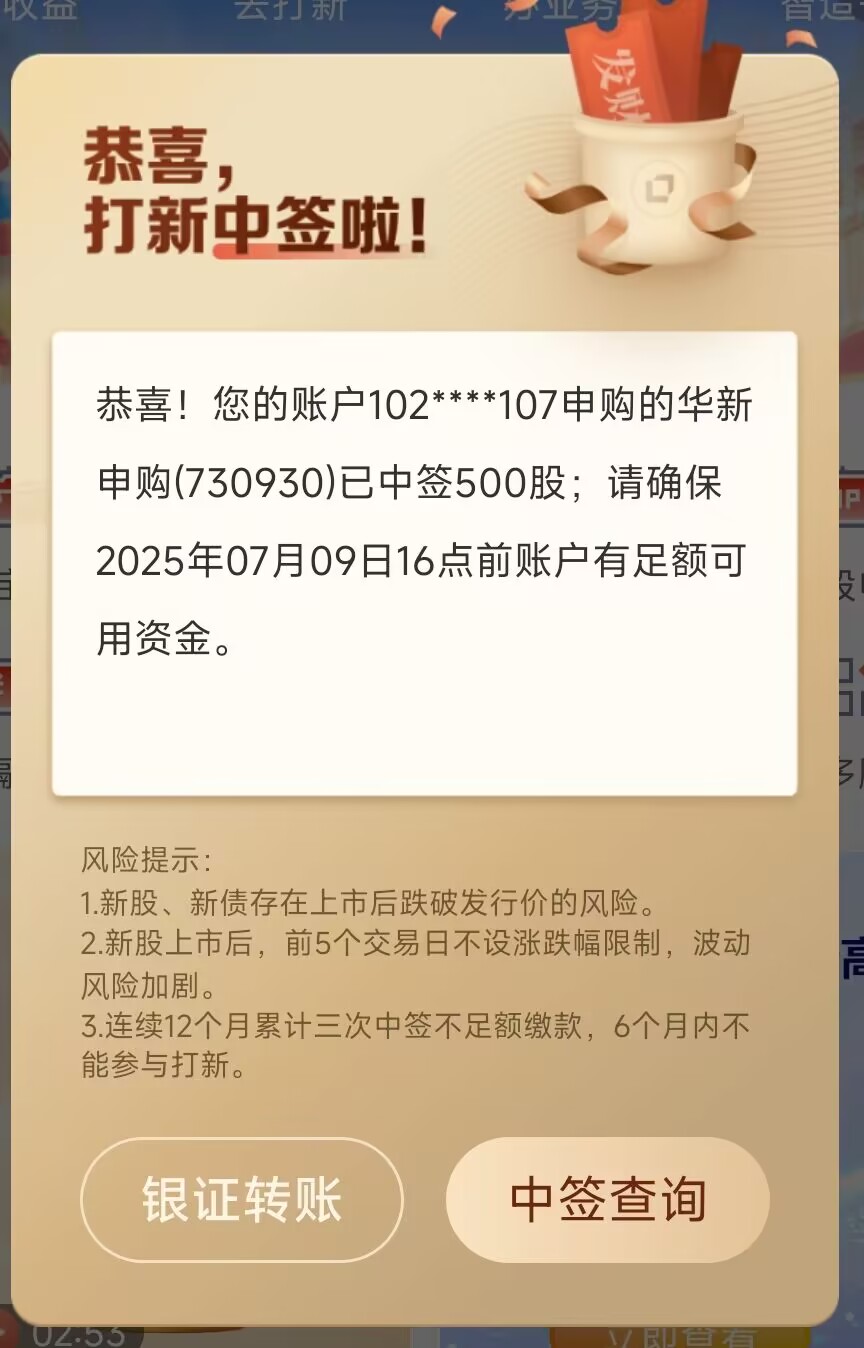 差不多三年没有中签了,蚂蚱腿也是肉啊!
