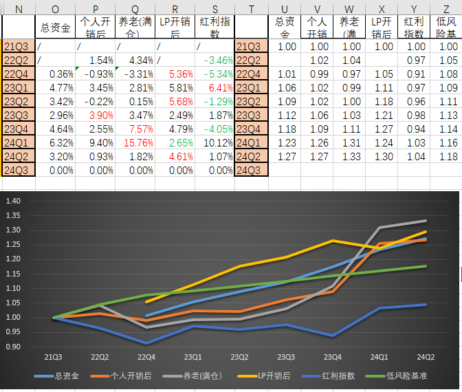 银行和公用(绿电)五年全收益年化在5%左右,扣除股息基本没涨,应该还远远没到位,既然减仓占了先机就不着急补回来,大概四季度末或者明年一季度再考虑接回。