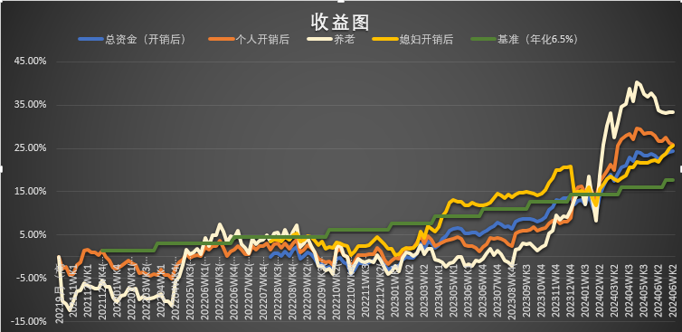 媳妇账户从2023年1月开始慢牛,最近逆势走出新高;个人及养老账户2023年8月见底以来的上升趋势告一段落,回撤较大;两儿子念书基金账户满仓抄作业,感谢安老师......