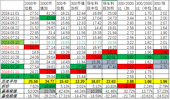 从指数估值上看,无论是恒生科技、HS300或者创业板,权重股已经处于合理线偏右的位置,而中位数还是比较便宜的,按照经验,会迎来前者泡沫化同时后者大底的机会。