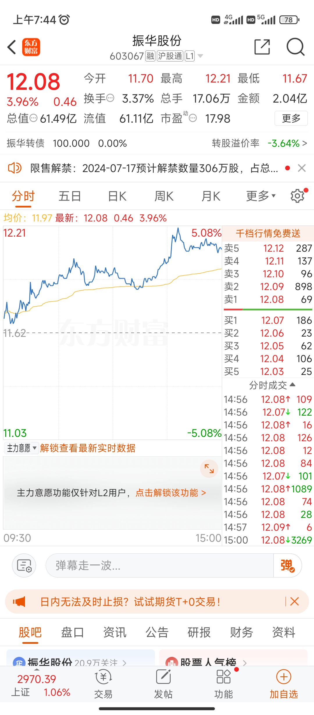 镇洋发展400股可配到,次日跌幅五至六个点。