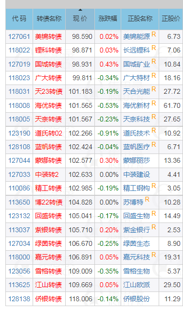 忘了说选债标准了:AA级别以上,到期收益率大于3%,到期时间2年以上,正股价2块钱以上,筛选出来就是这些转债听说毛师来转债了,瑟瑟发抖。