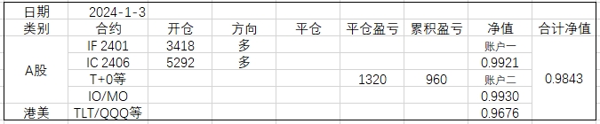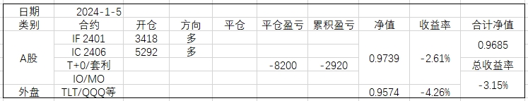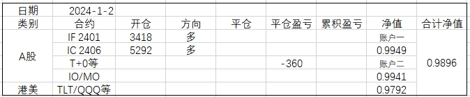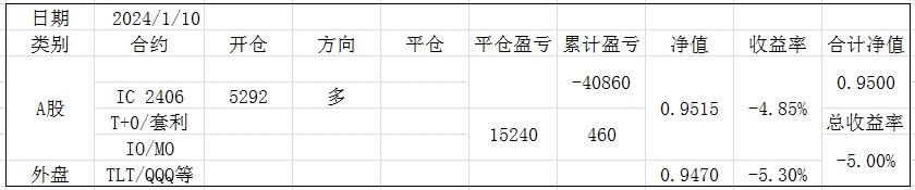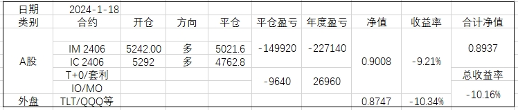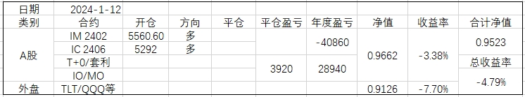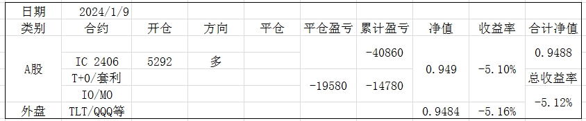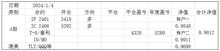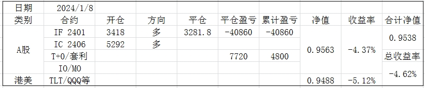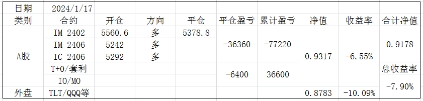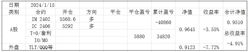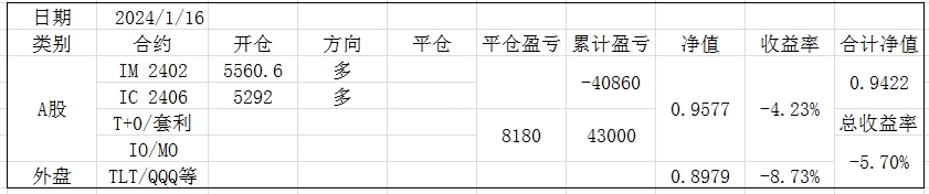 1. IC、IM仍持有多单,浮亏中;2. 美股继续回撤,继续持有TLT+卖购。