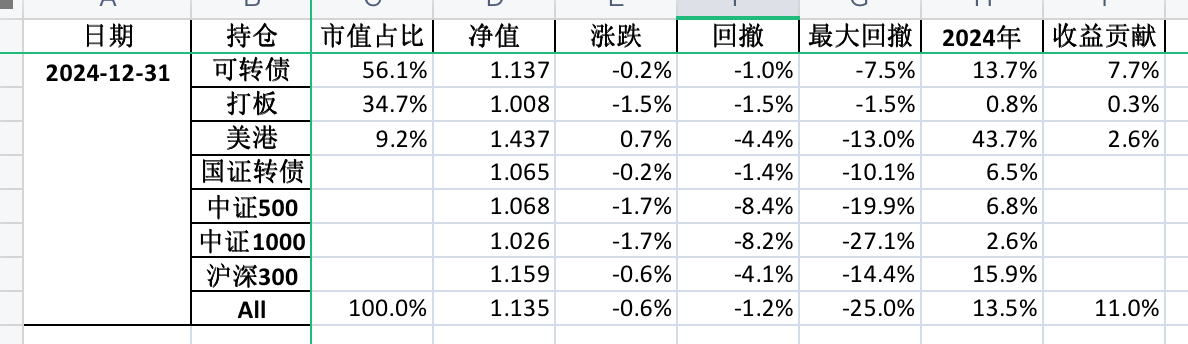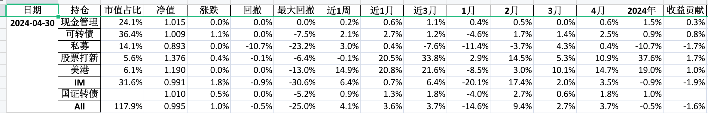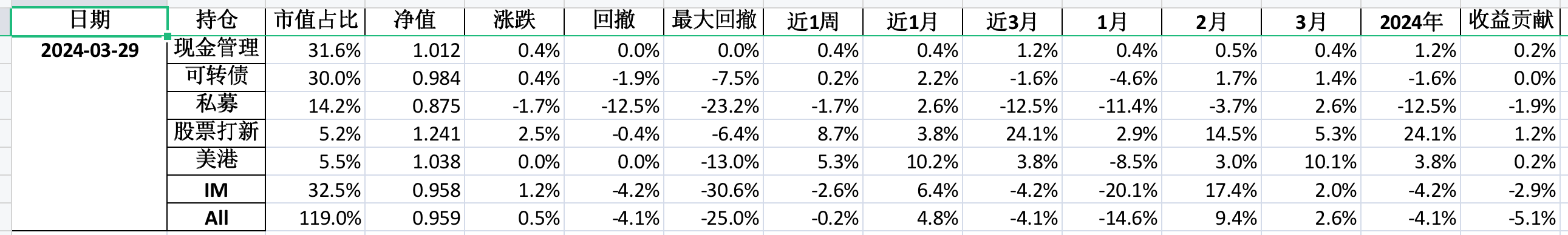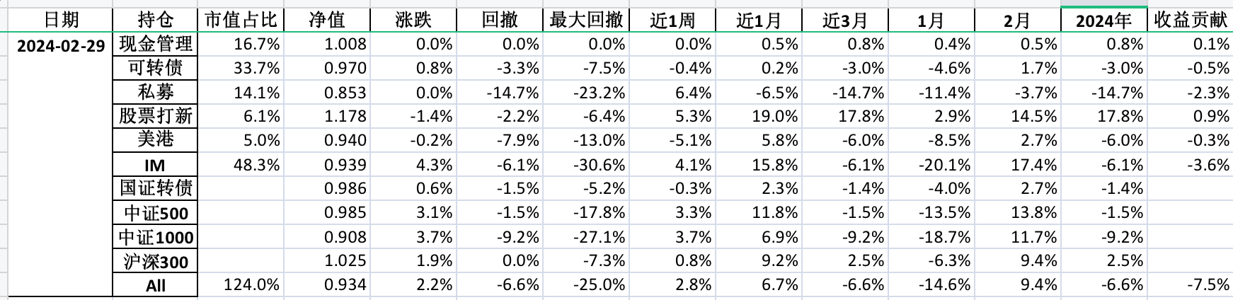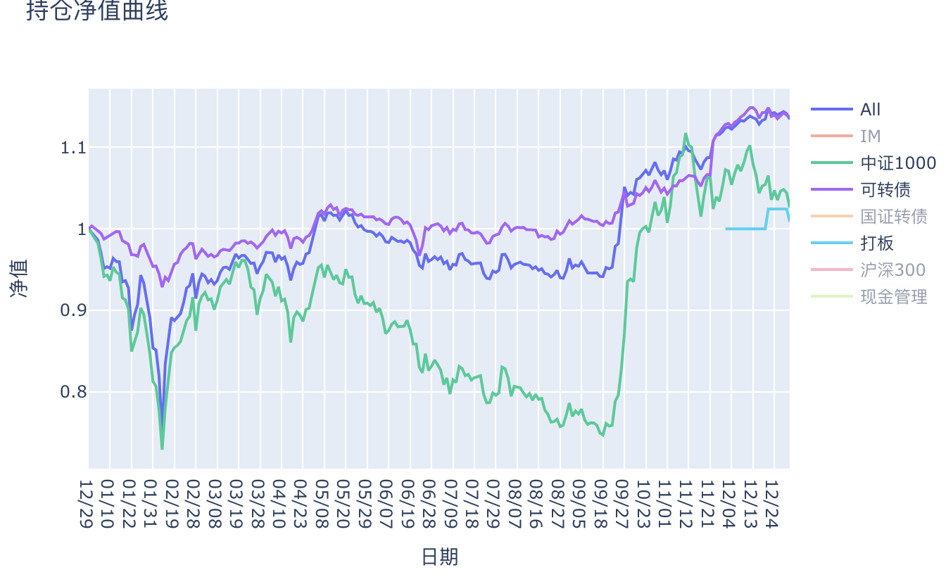 今年比去年年初减少一些IM持仓,增加了可转债,后面再慢慢调整,感觉今年承担的风险比去年更小一些,或许今年能正收益了。