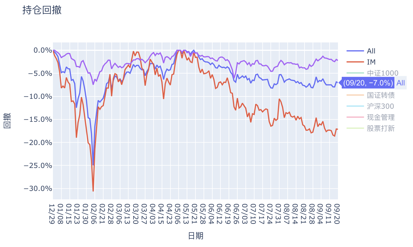 IM一部分是纯吃贴水;另一部分是吃贴水,用贴水买期权,模拟一个上涨2x,下跌1x的效果。