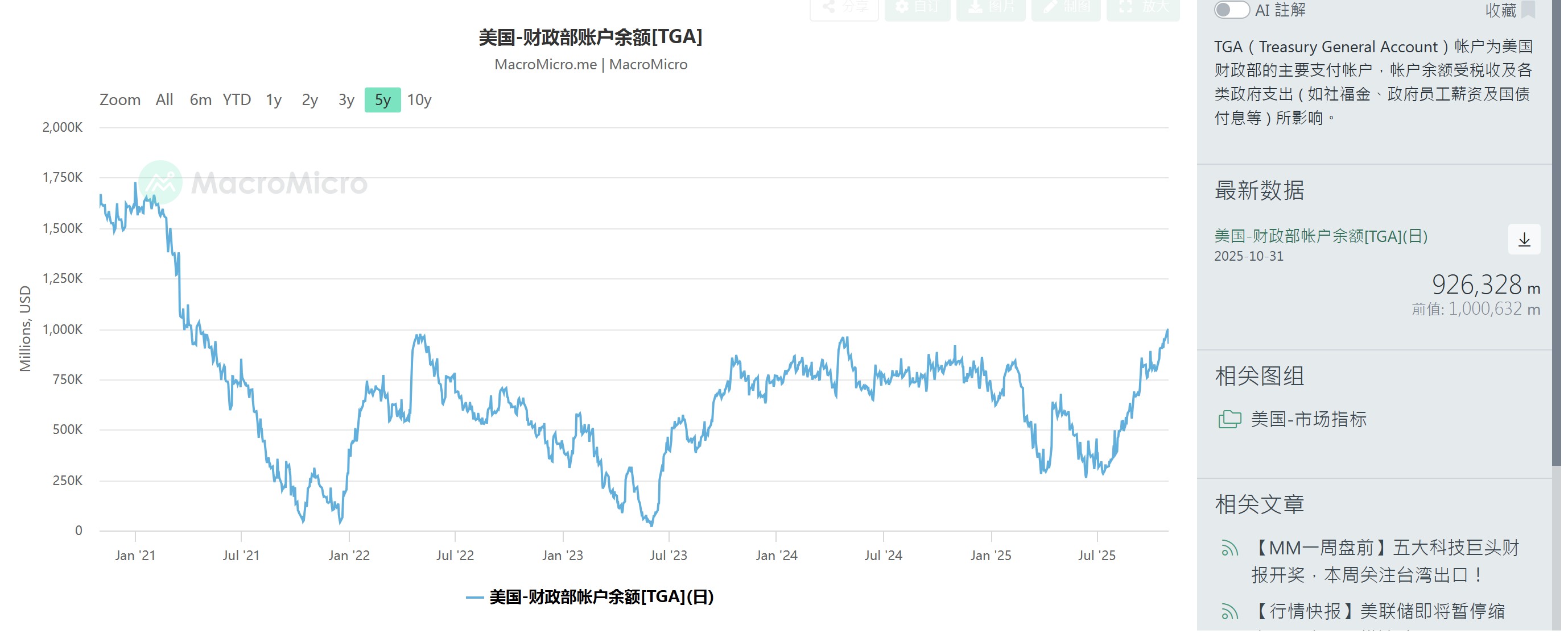 与此同时由于政府关门,美国财政部不花钱,导致政府支出大幅降低,10月抽水2000亿美元,效果等同于加息缩表