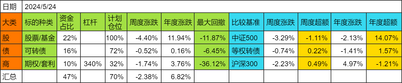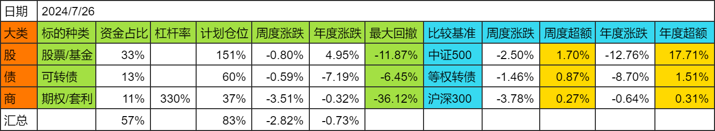 1、大类股票+0.7%,相对中证500超额-10.12%,持仓基金及股票全部跑输中证500,其中量化基金让我大开眼界,策略踩踏有点恐怖。