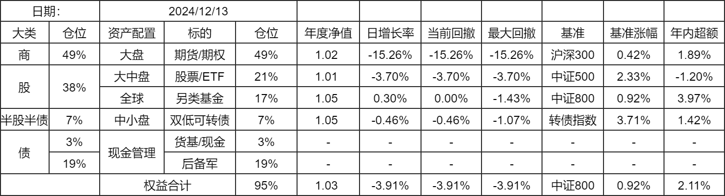 今年实验的策略,对我来说相对靠谱的策略,下阶段还是以策略为主,可以的策略赋予更多的资金比例
