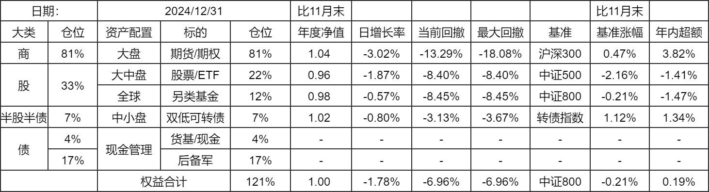 前11个月都是按照绝对收益来计算收益,12月份开始转为净值法。12月保本,那就是按照绝对收益率计算的话收益率在30%,大部分收益是9月份贡献。