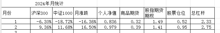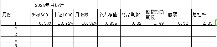 近期操作 :在沪深300,3400点买入2手IF,卖沽1手IO ,合计等价2.5手IF。在中证1000,5300点买入1手IM, 中证1000,4850点时,买入150W小票,加仓的仓位全部被套,目前只能希望不爆仓躺平,慢慢熬时间了。
