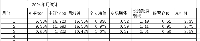 5、今年操作好的方面是持有的3手股指在1000和300切换了几次,都做到了超额收益。