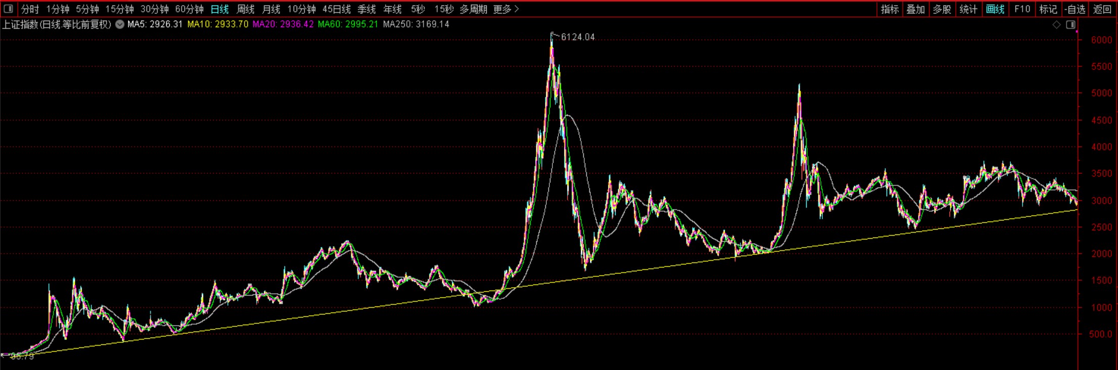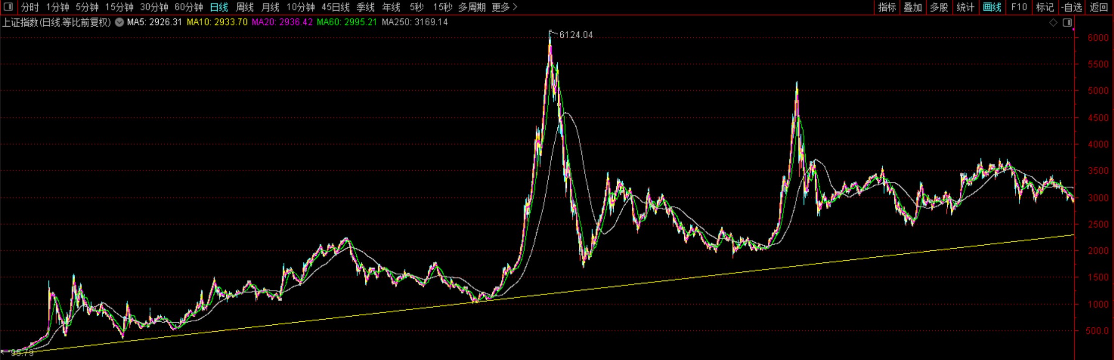 因为这条最长的趋势线,是整个市场最基础的共识或者说长期收益的底线预期