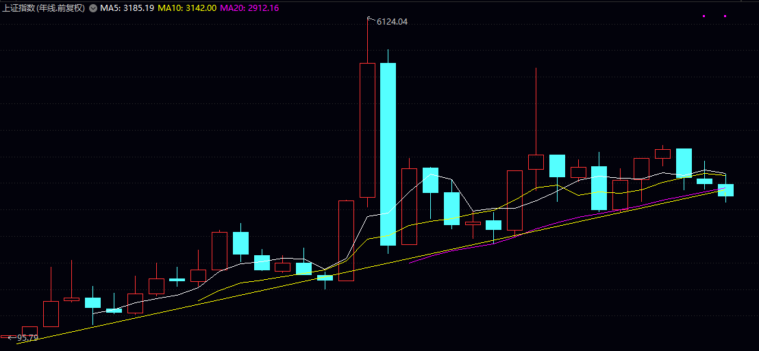 2023年疫情放开,股市一波行情,因为预期经济回升,股市机会层出不穷,但今年预期好像没有了,A股只会震荡下跌,下跌震荡,大家好自为之。另外20年线,自从20年以来,从来没有一次有效跌破这根长期趋势线,每次跌到这里就是低点,从而引起一波大行情,而这次目前看来非常不乐观,有效跌破20年线预示着A股的大C浪开启,下跌空间巨大。