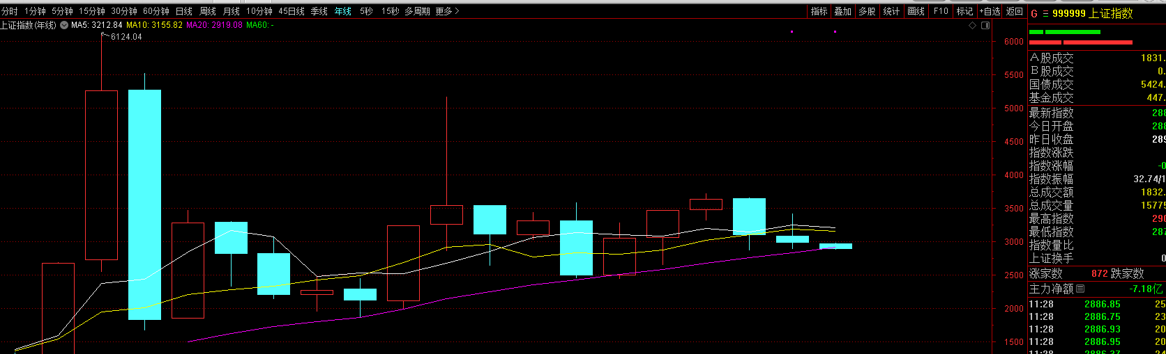 开年几个交易日,天天跌,好不容易今天止跌了,但看形态依然是下跌中继,A股为何去年在全球股市走牛的情况下,依然决绝地下跌?大家不知道思考这个问题没有,而今年元旦以来,美股今年获利回吐,大A却比美股跌的更惨。直到目前收于20年线(2920附近,也称国运线)以下,守在20年线之下,熊市初期尾声步入中期开启的标志。