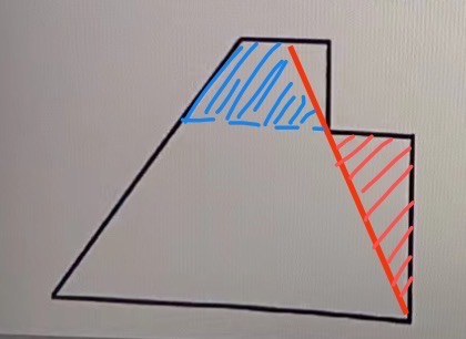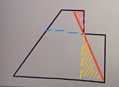 还有一种斜着切的,沿着左边斜边为底做梯形, 右下角切一小块作为梯形的顶