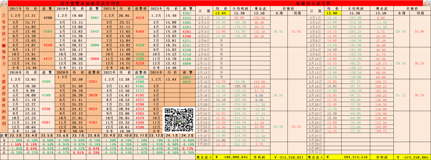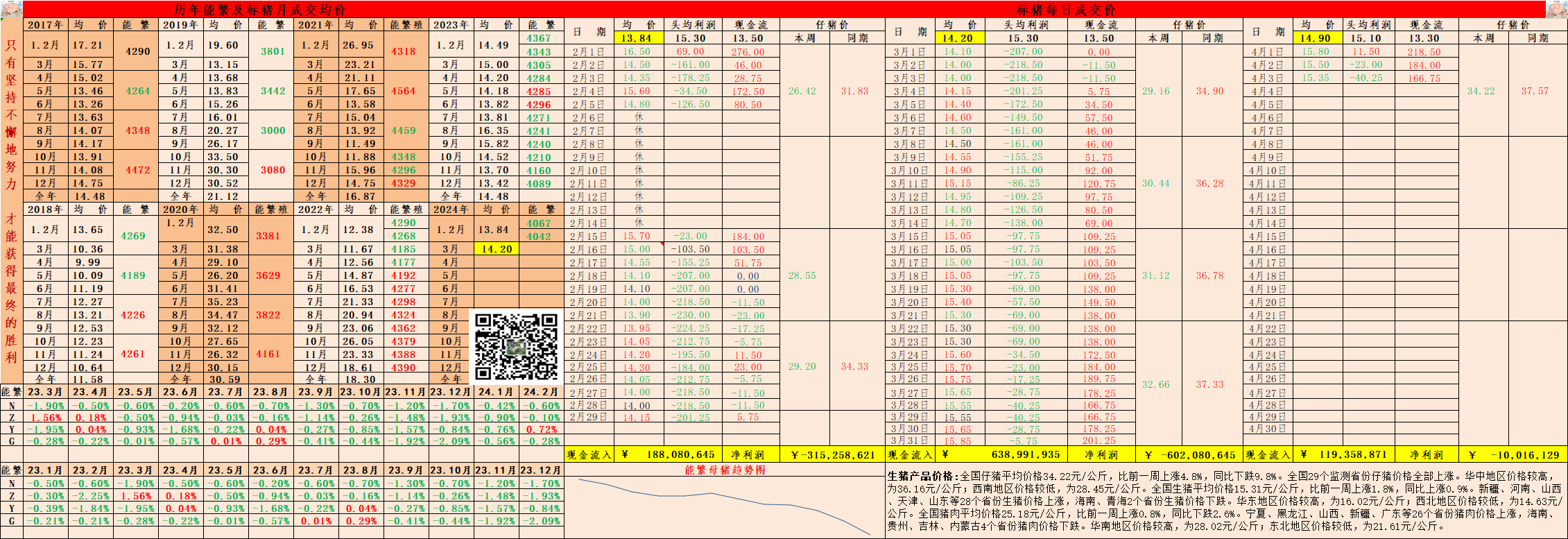猪价:消费持续低迷,但猪价依然震荡上行,一方面是清明节备货,另一方面也印证了去年冬季疫病对猪的影响是真大,市场猪源确实比想象的要少。