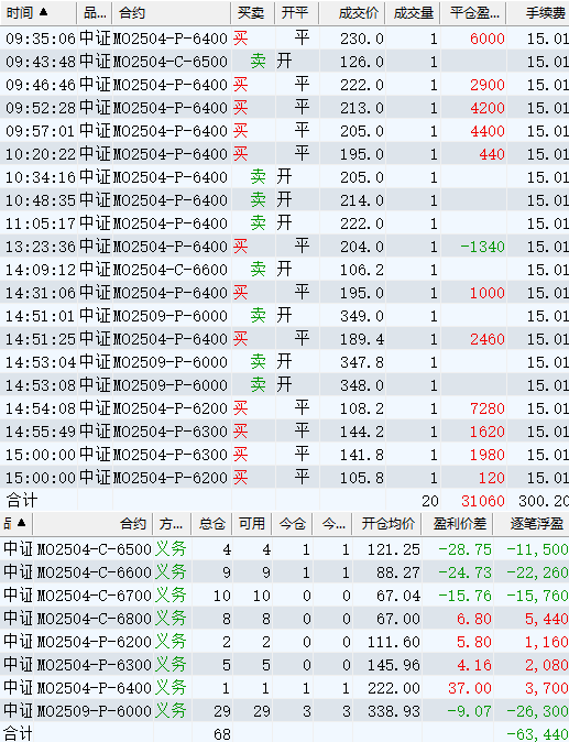 日盈利额=(-34419.20逐笔浮盈) + (-160.00平仓盈亏) - (495.33手续费) - (-1280.60昨天逐浮盈) = -33793.932025/4/3 楼主最后一帖。楼主持仓:MO期权双卖。然后清明节假期特朗普宣布关税,4月7日周一开盘A股大跌,股指期权大涨,估计被动平仓,损失惨重。