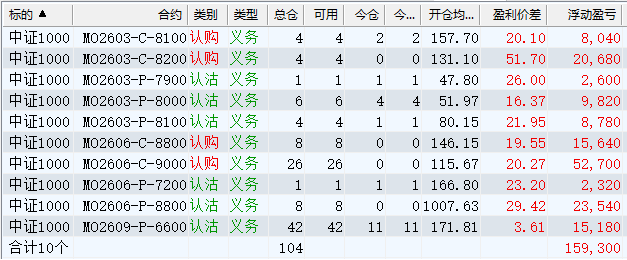 中证1000下面将面临是否会破半年线的问题,半年线大概率要被打穿,但年线到6月份前应该不会被打穿,现在年线的点位在6605,并且每个交易日以3~4点的速度上移,再过2~3个月,年线的位置大约要到6700以上,但为了安全起见,今天把下面MO2606-P-6600的单子全部下移到6400以下。