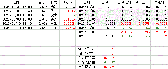 2025年又开了个好头,规避了前4个交易日的大跌,只用了7个交易日就跑赢了标的国防ETF 8.175%。