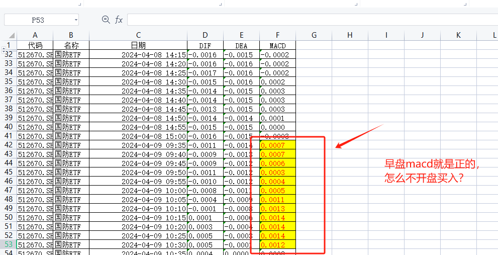 楼主,请教下为什么您4月9日的买入点位是10:20分呢。明明一开盘macd就转正了哦。而且用5分钟MACD来预测T1的事情,这个是否时间上没法完全推理你理解错了,不是MACD转正了买入,而是MACD公式中的DIF值转正买入。