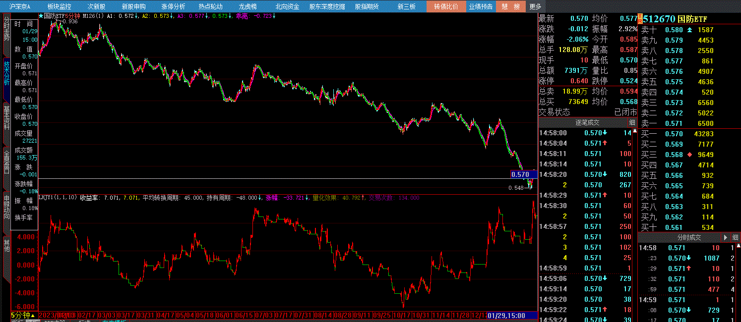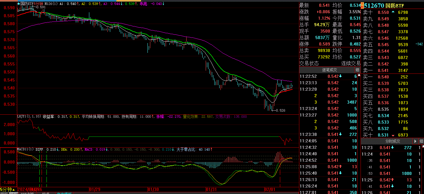 MACD趋势模型在单边市里是轻松,今年到现在正好是个单边下跌市,到震荡市里把耳光扇成猪头。你太喜欢想当然了,你统计回测过国防ETF历史数据么?我统计的情况是2019年上市以来,按照5分钟MACD操作效果非常理想。