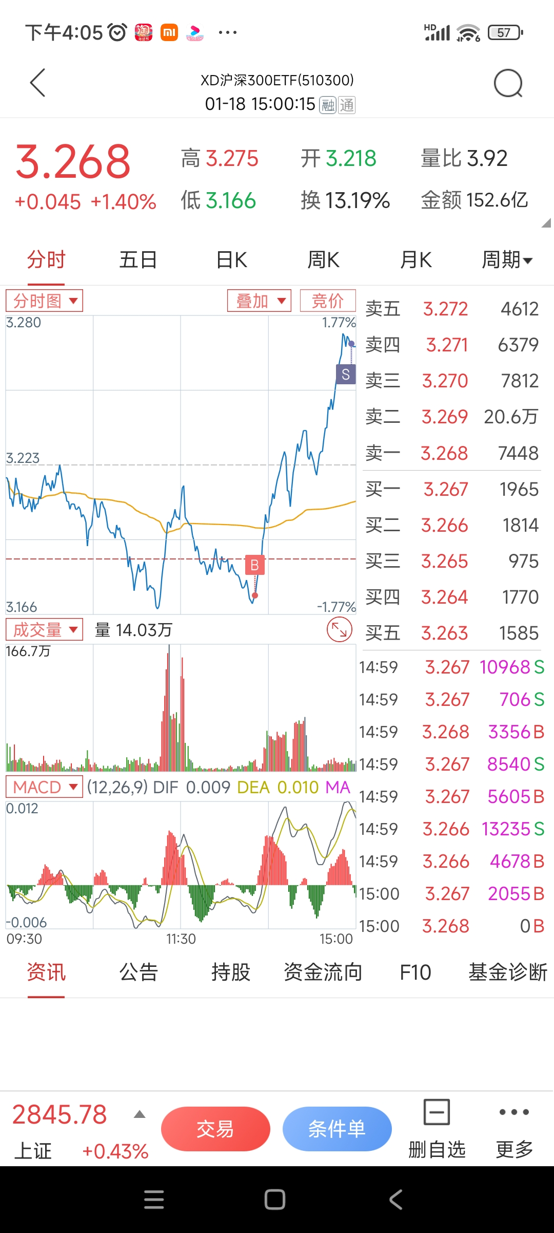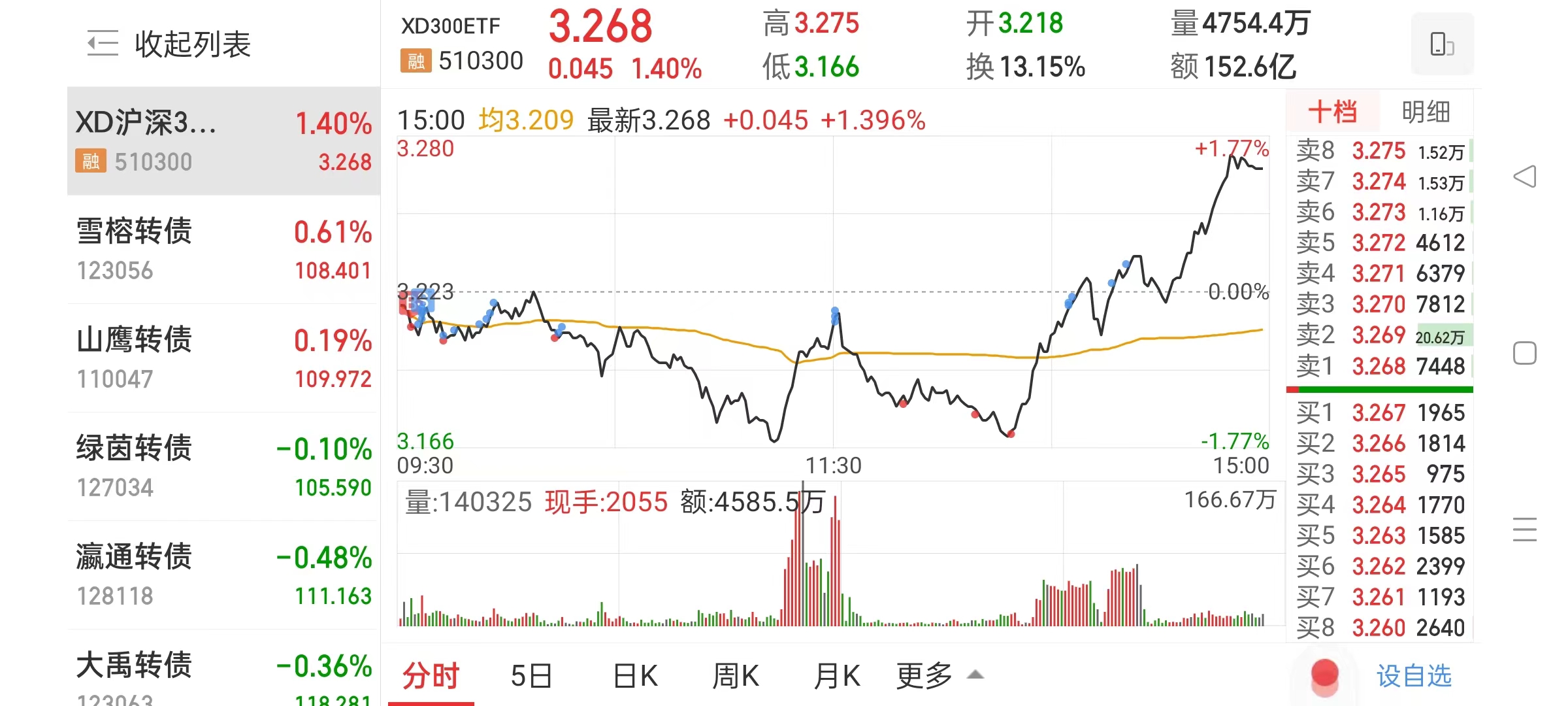 昨天买了几手仓位,今天做了T, 跌下来没钱买,子弹全打在转债上了,后来把生活费都满上了,暂时赚了顿盒饭,谢谢国家队,上图。