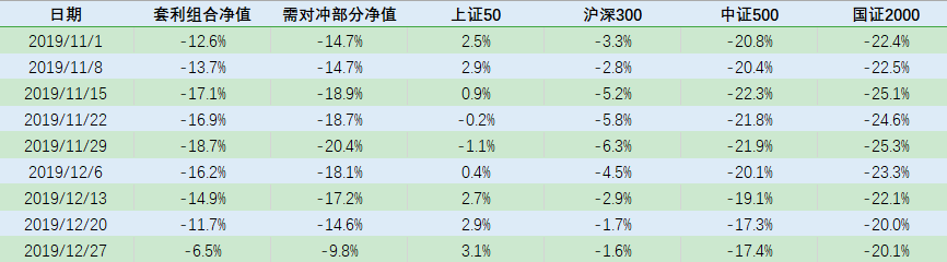 这个策略的底层是小市值的基础上做超额收益,目前小市值这个底层逻辑是否依然存续存疑。目前私募量化的赎回潮可能刚刚开始,若是后续延续17-19年的大市值结构的话,覆巢之下安有完卵?之前用VBA做过一个程序,在Excel上模拟本策略跑了一遍2017年11月以后的数据,这里截取至2019年12月。