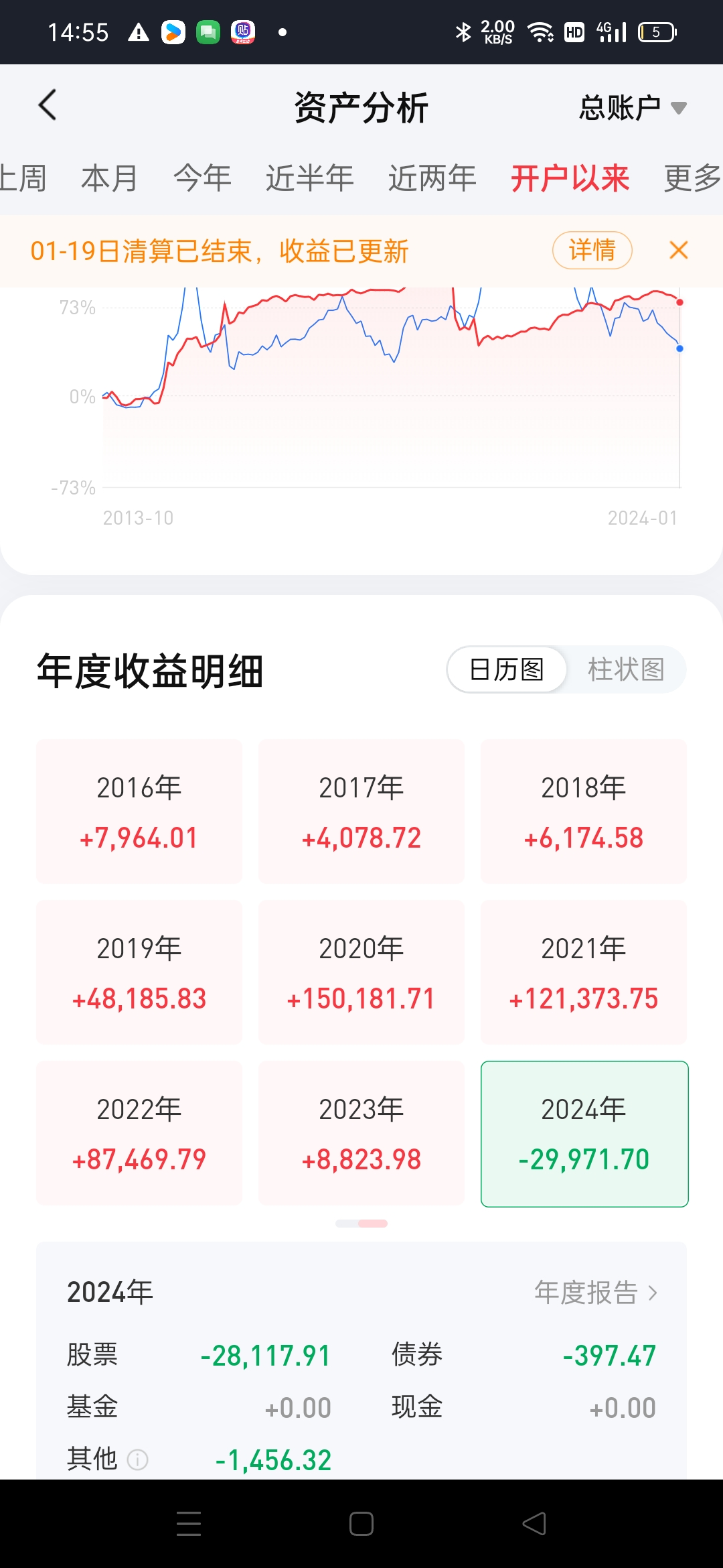 13年到现在没亏过,今年估计栽了