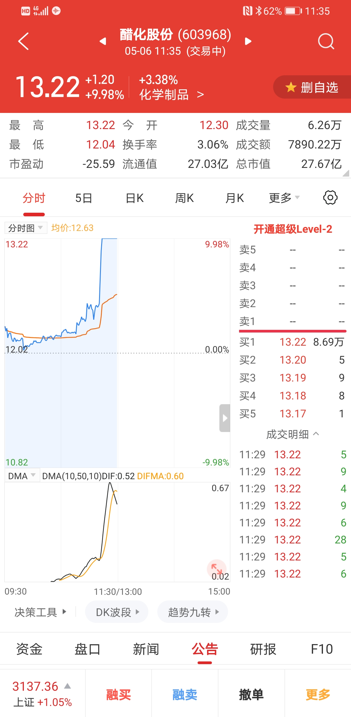 2024年第24个涨停 板,醋化股份又涨停板.截图留影纪念(第22亚星客车)