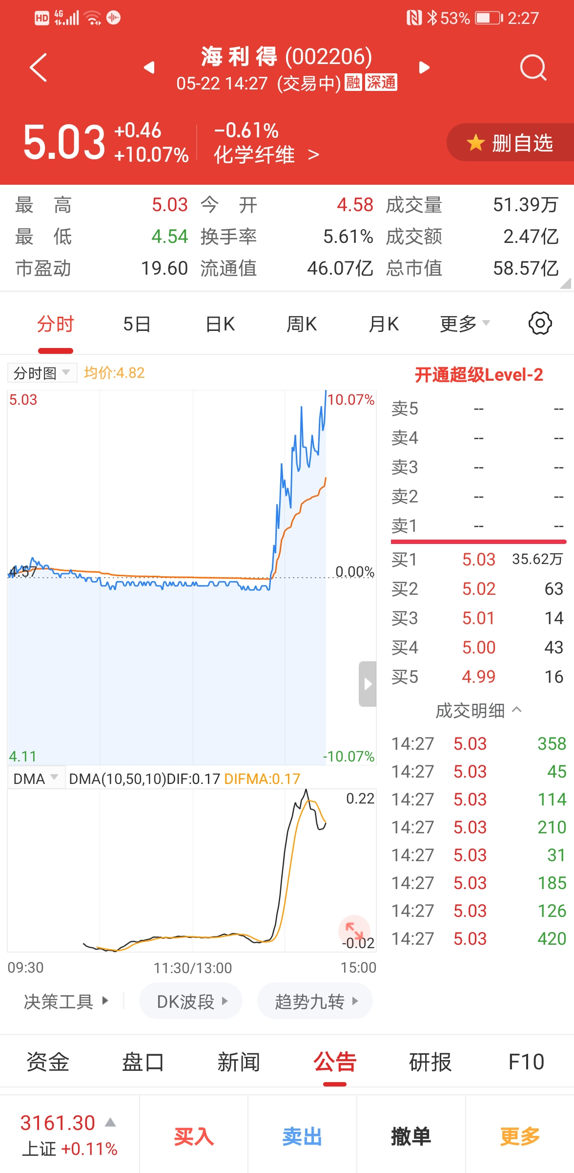 2024年第40个涨停 板,海利得.涨停截图留影纪念(第39城投控股)