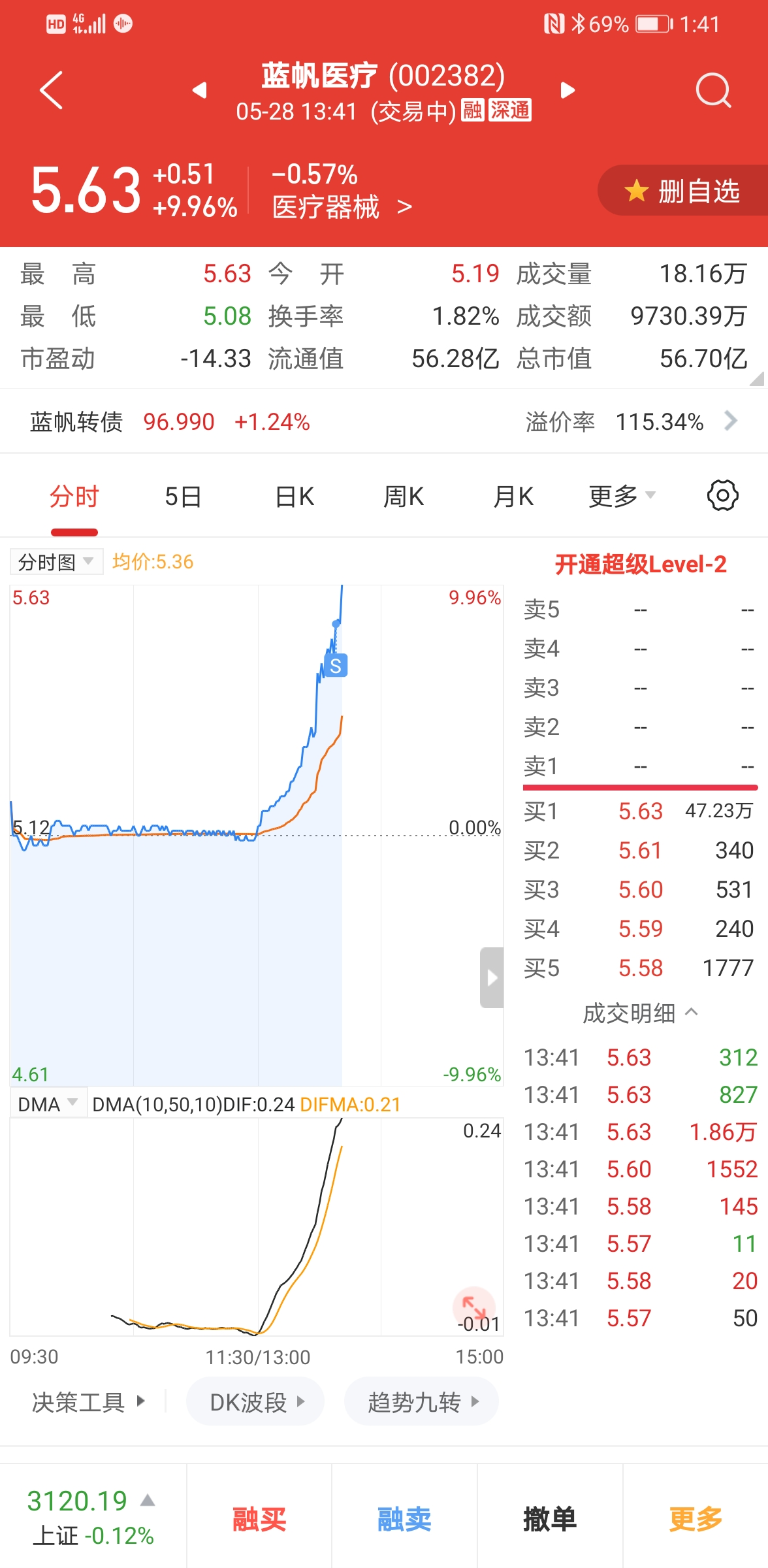 2024年第41个涨停 板,蓝帆医疗.涨停截图留影纪念(第40.海利得)