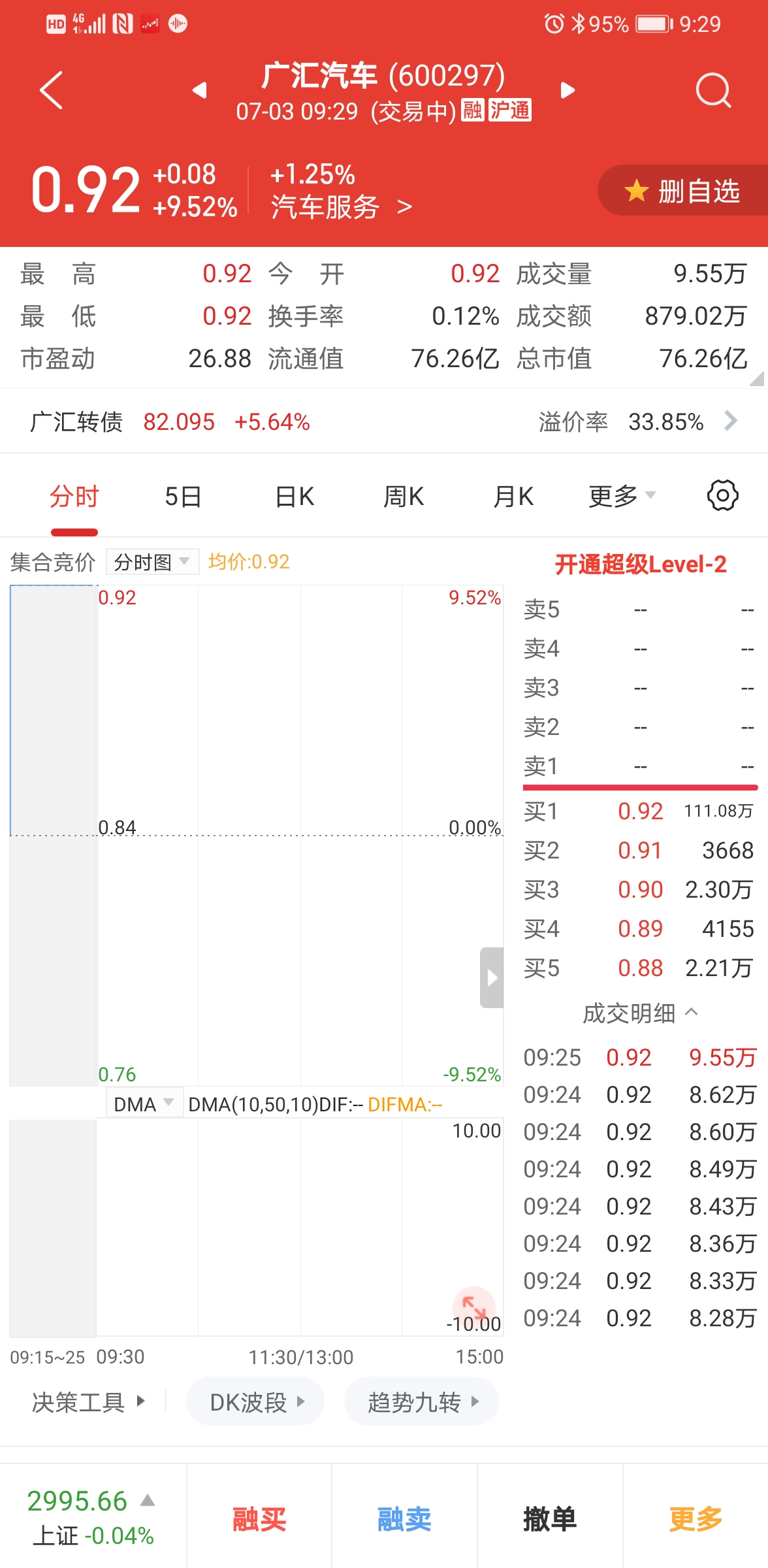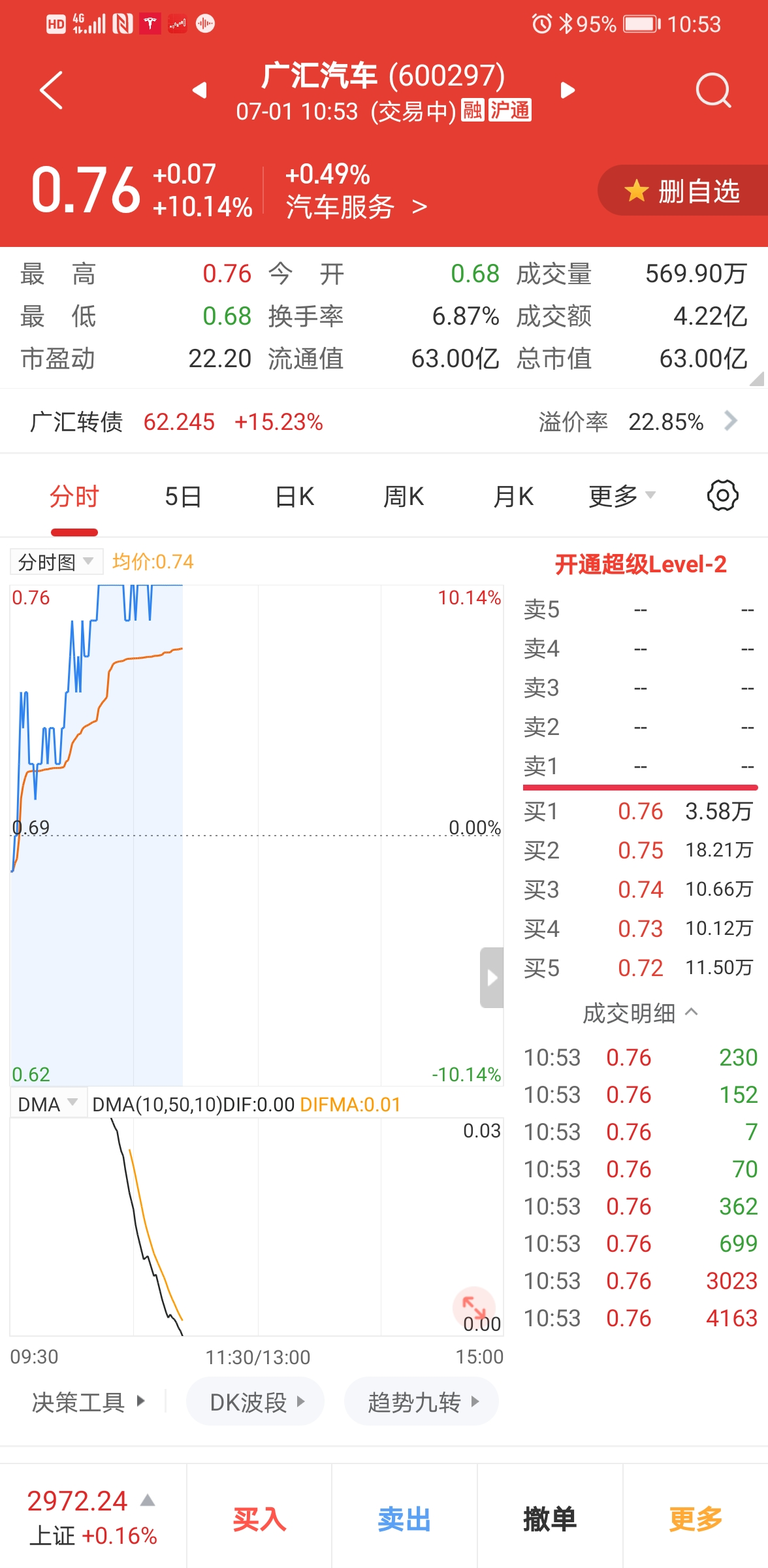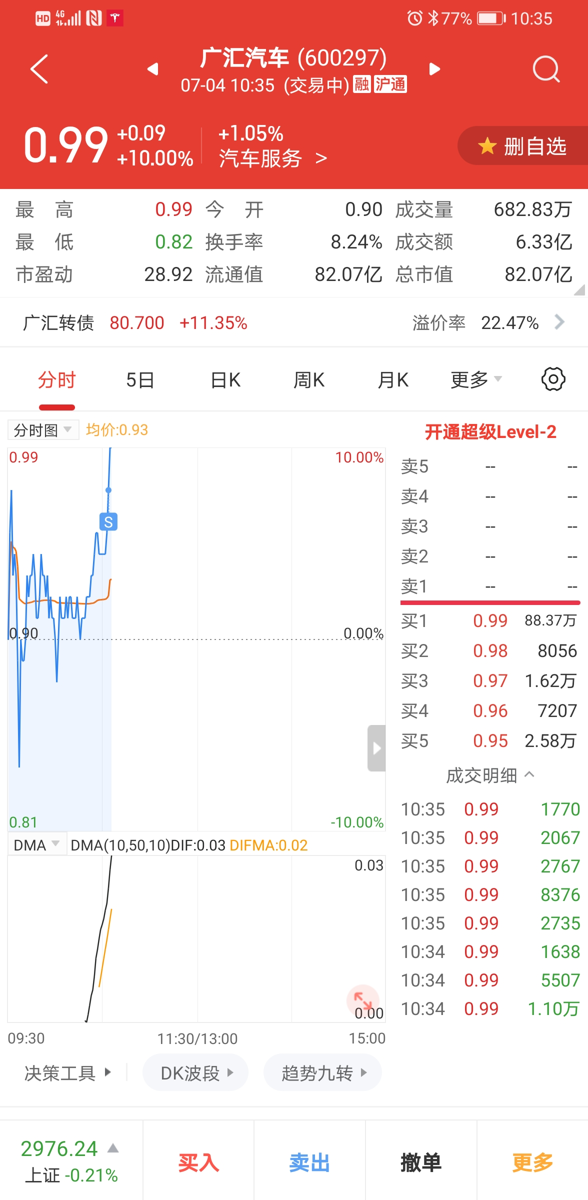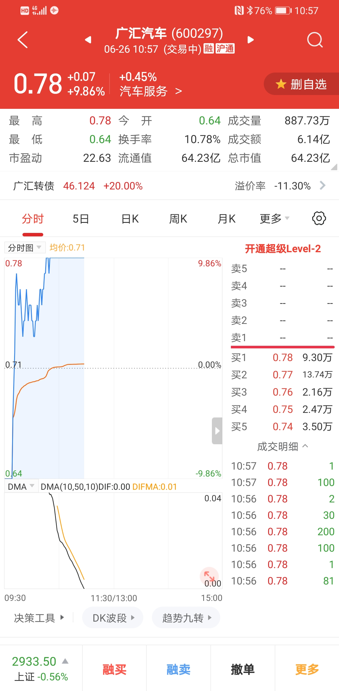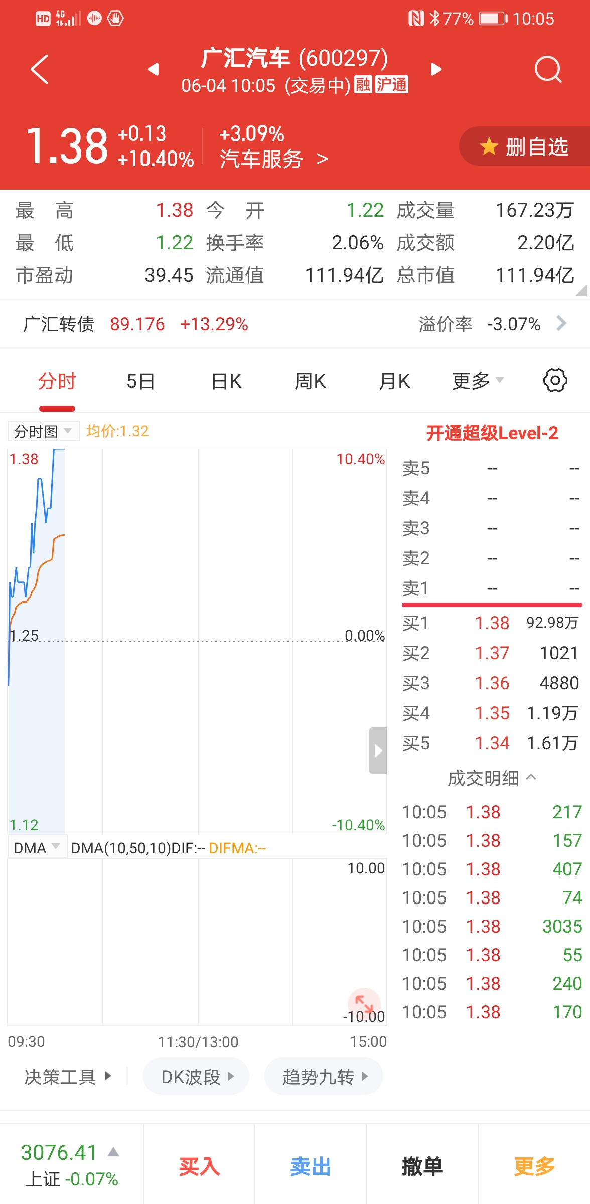 2024年第46个,涨停板.广汇汽车.截图留影纪念,第45.广汇汽车。