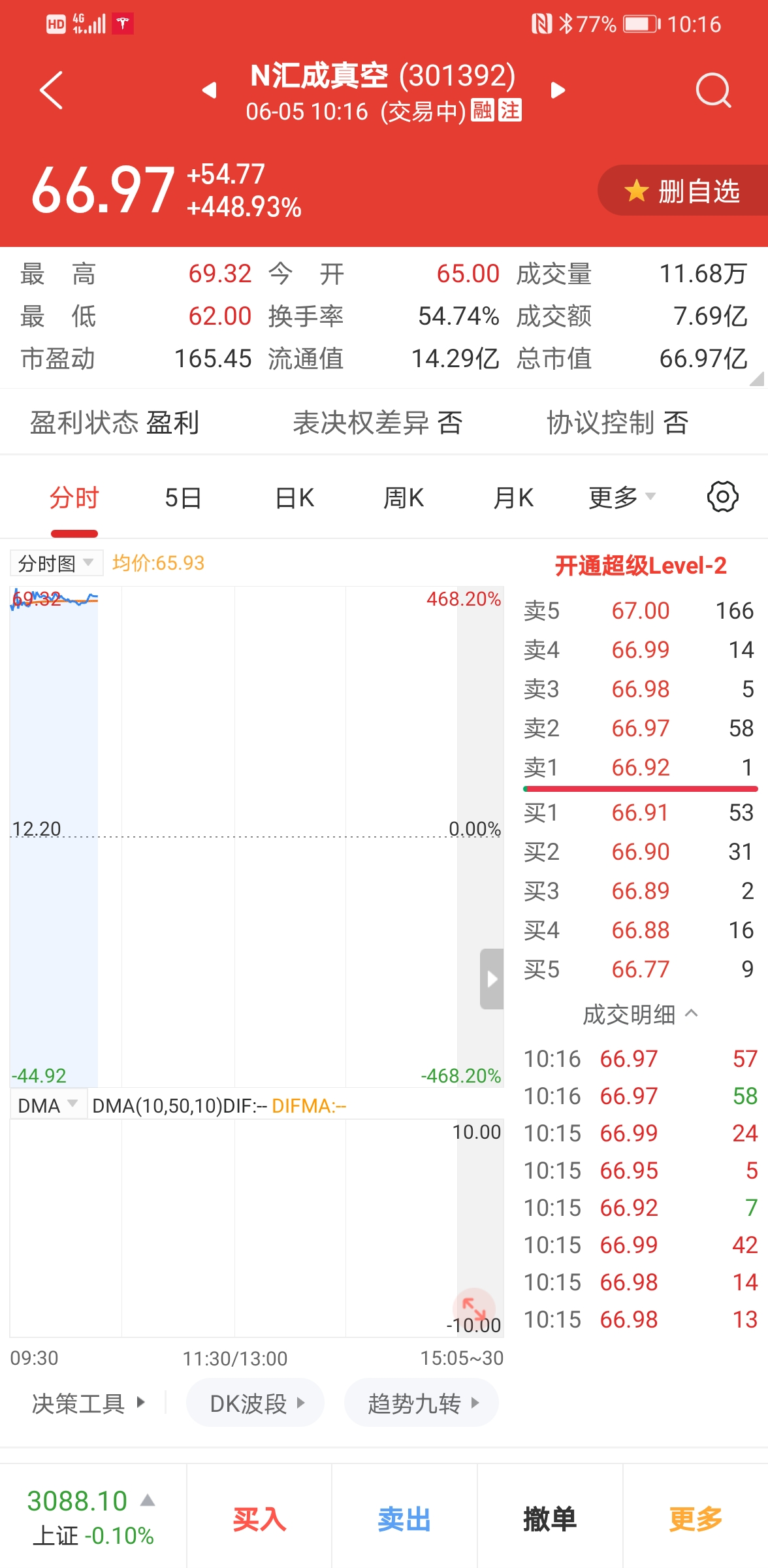 2024年第43个截图留影纪念,N汇成真空(SZ301392)暴涨450%, (第42.广汇汽车)