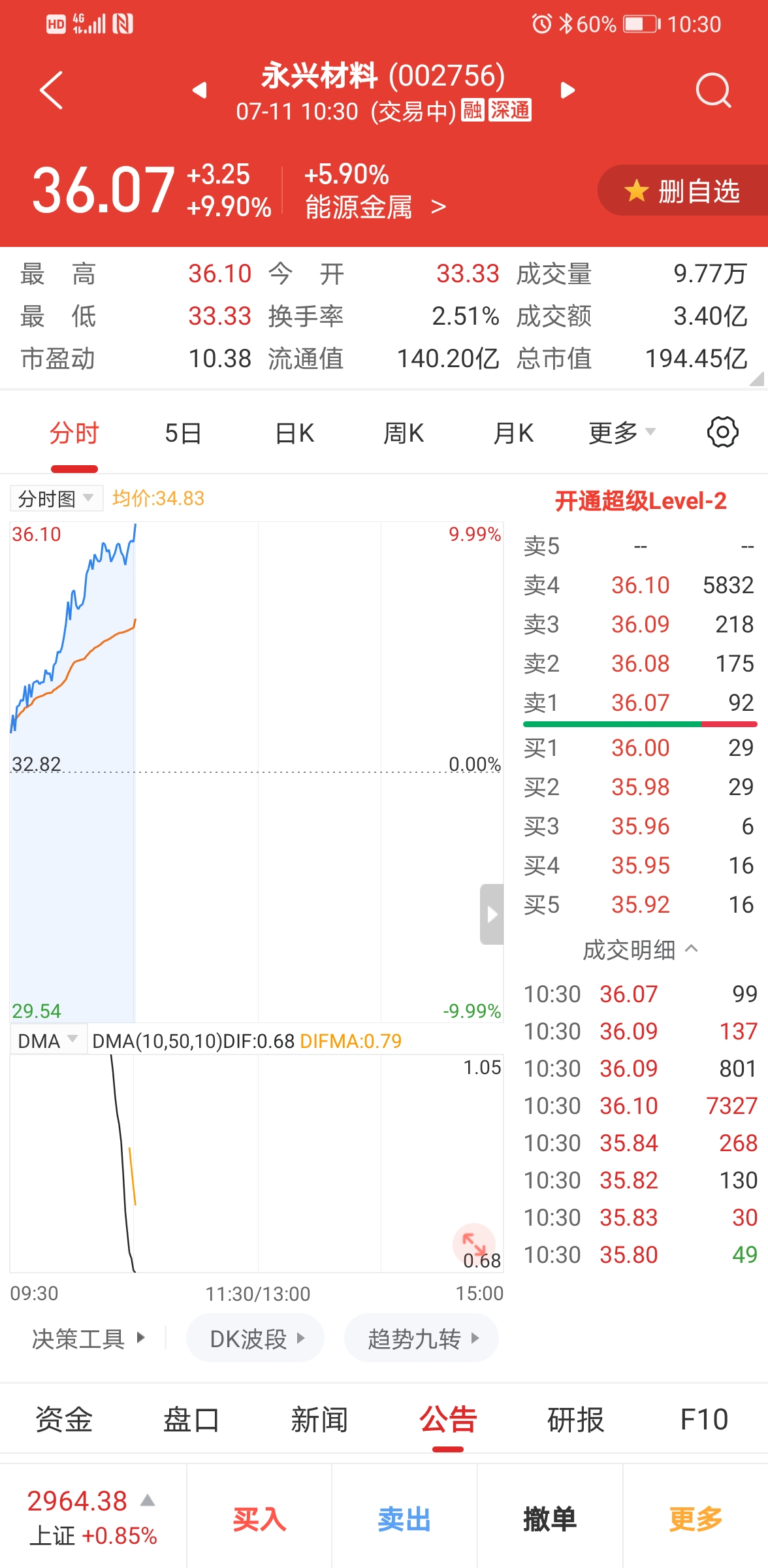 2024年第104个涨停板,永兴材料截图留影纪念!轩尼诗一开,好事自然来!