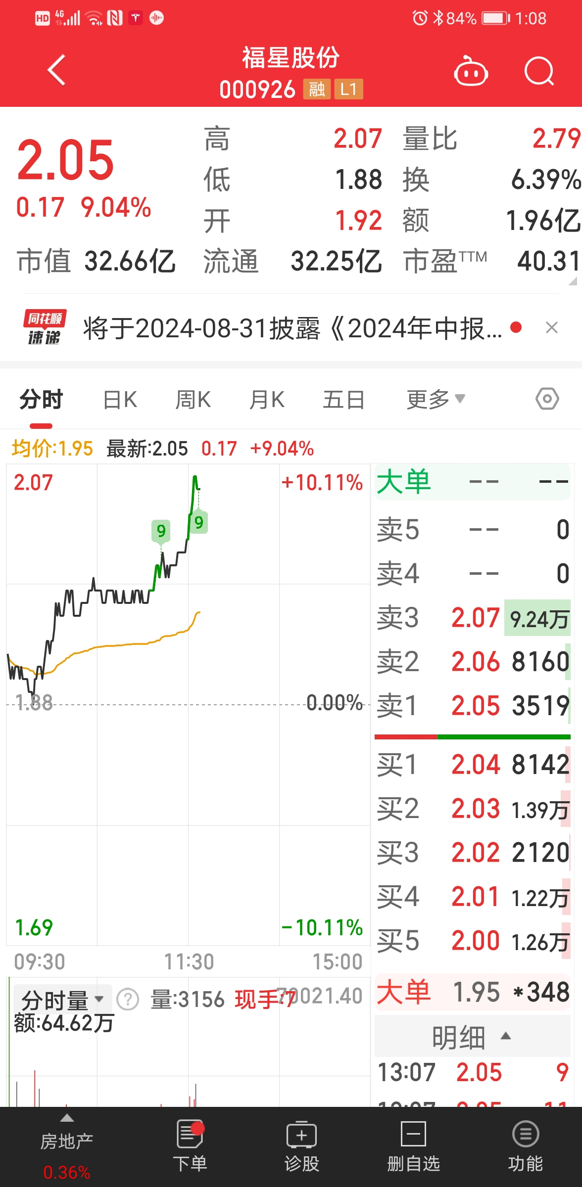 2024年第108、109个涨停板,上汽集团、福星股份截图留影纪念!