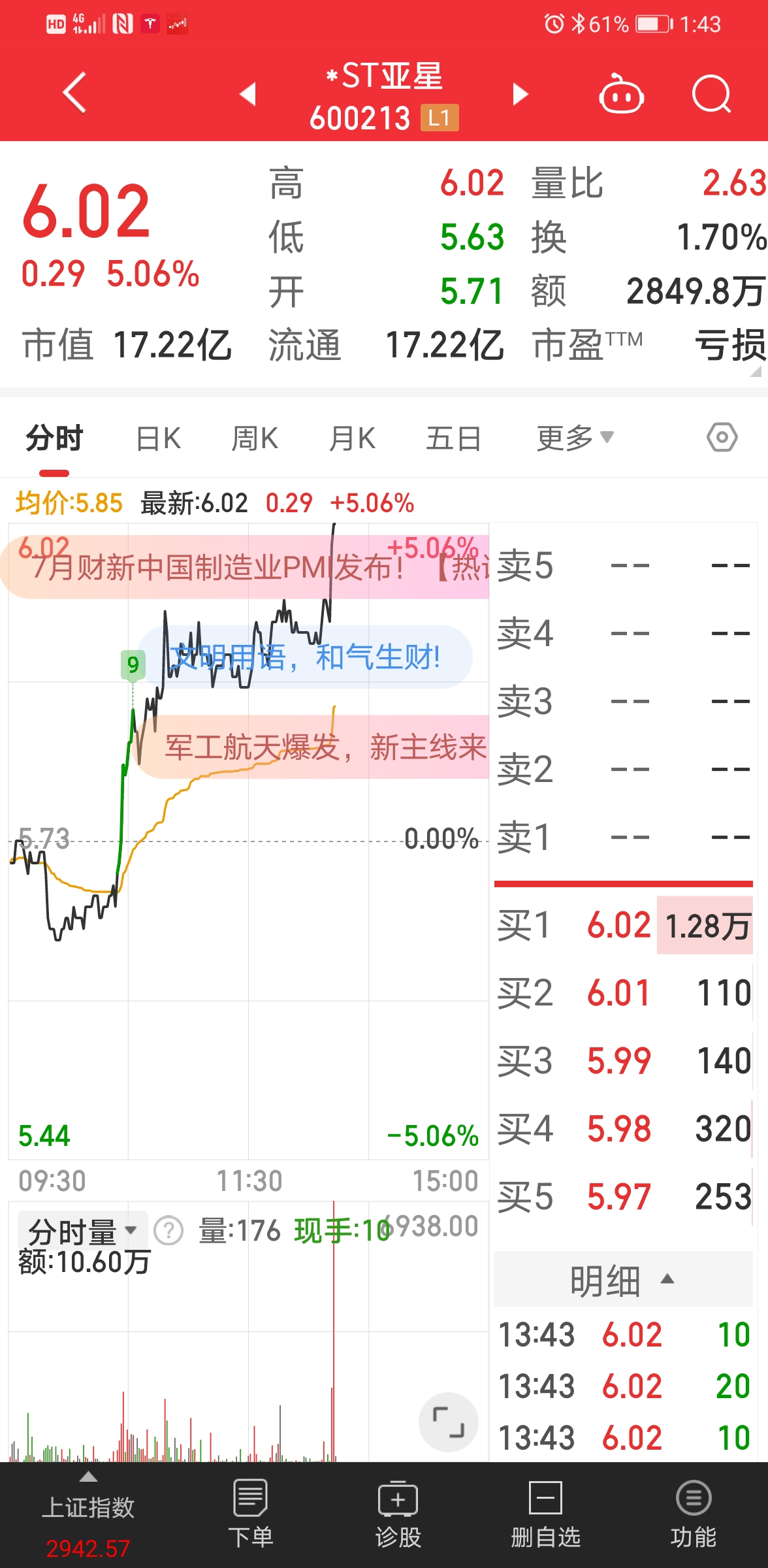2024年第61个涨停板,st亚星截图留影纪念,第60达安基因。