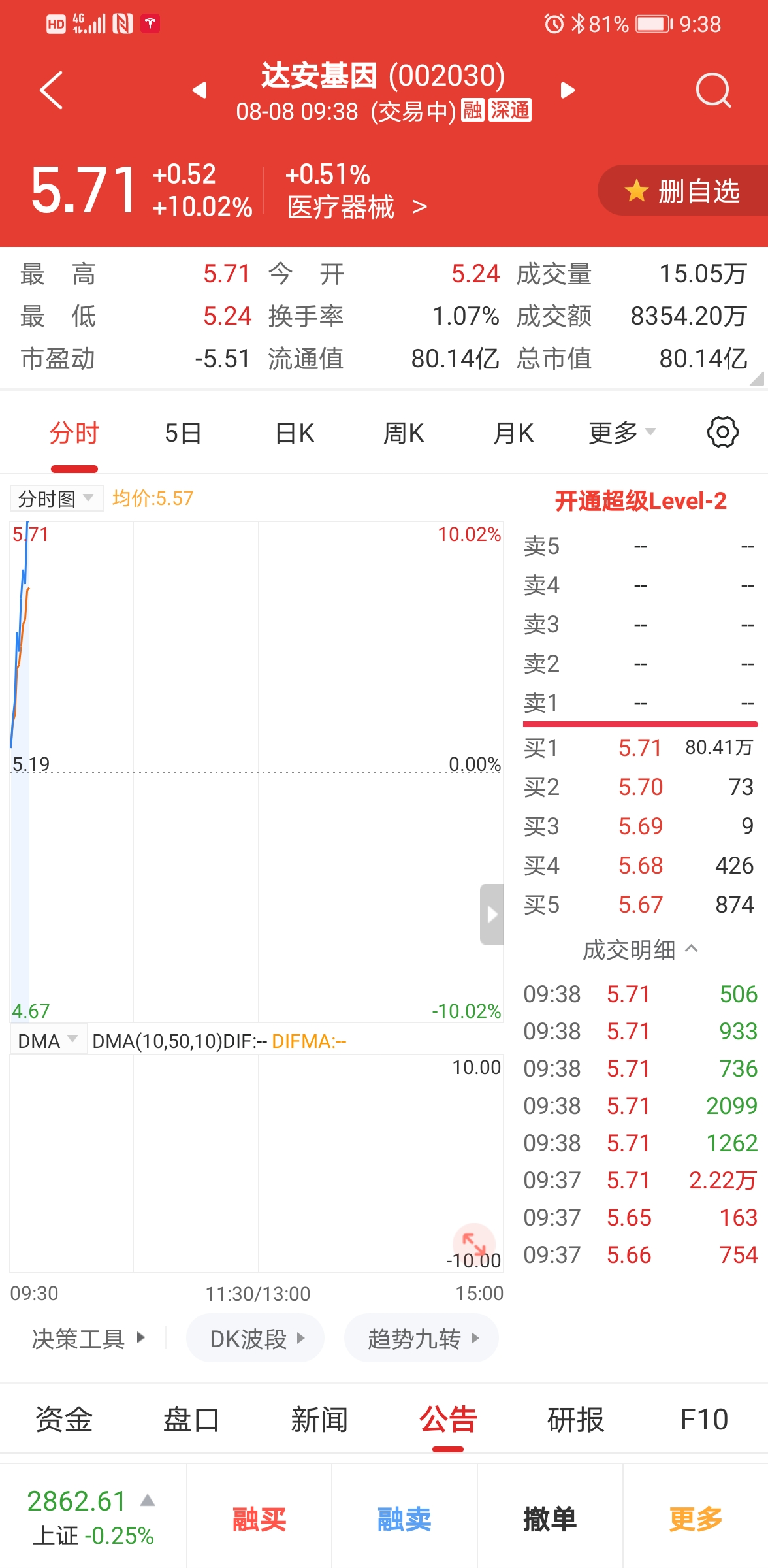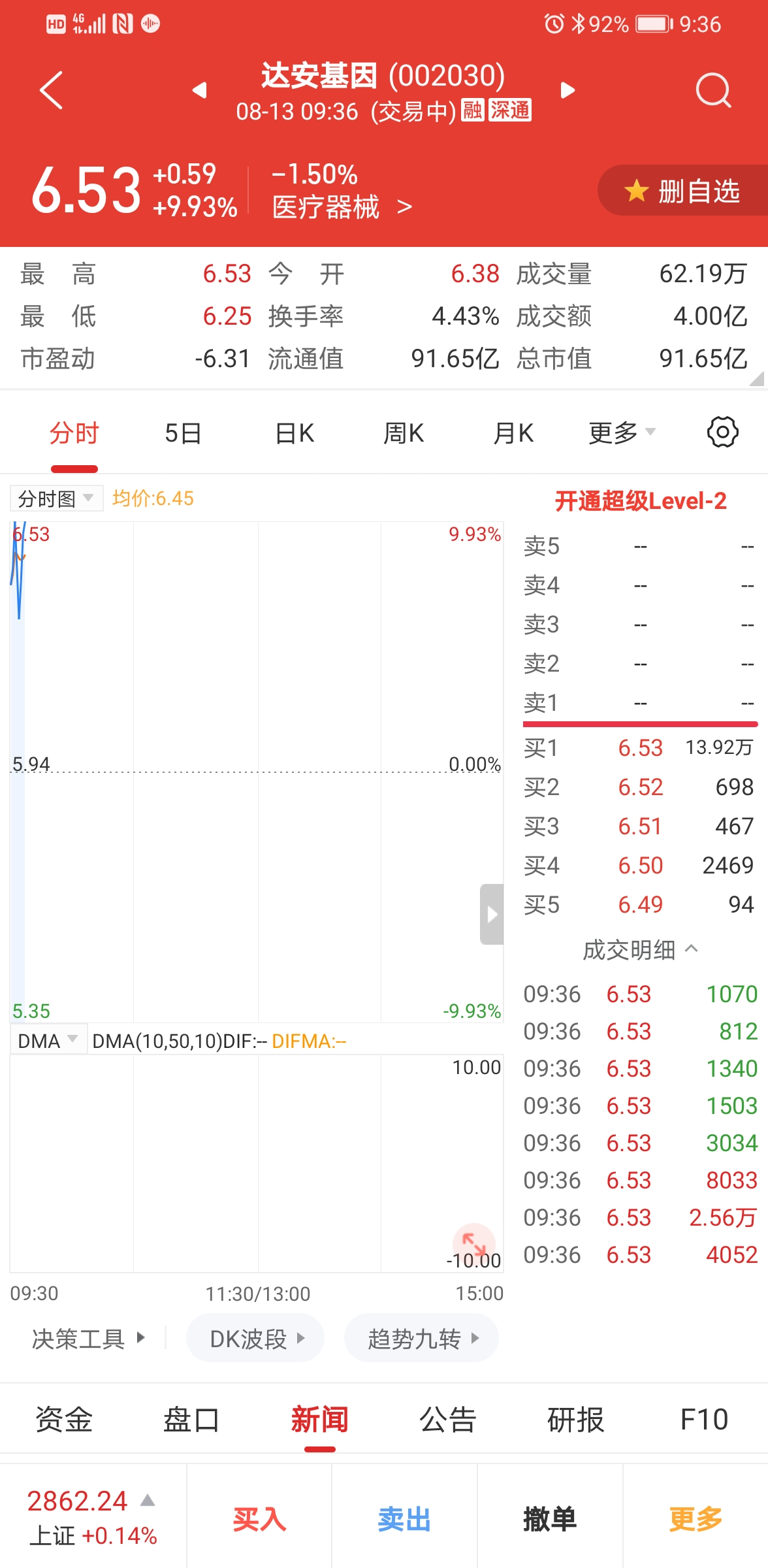 2024年第62个涨停板,达安基因截图留影纪念,第61st亚星。