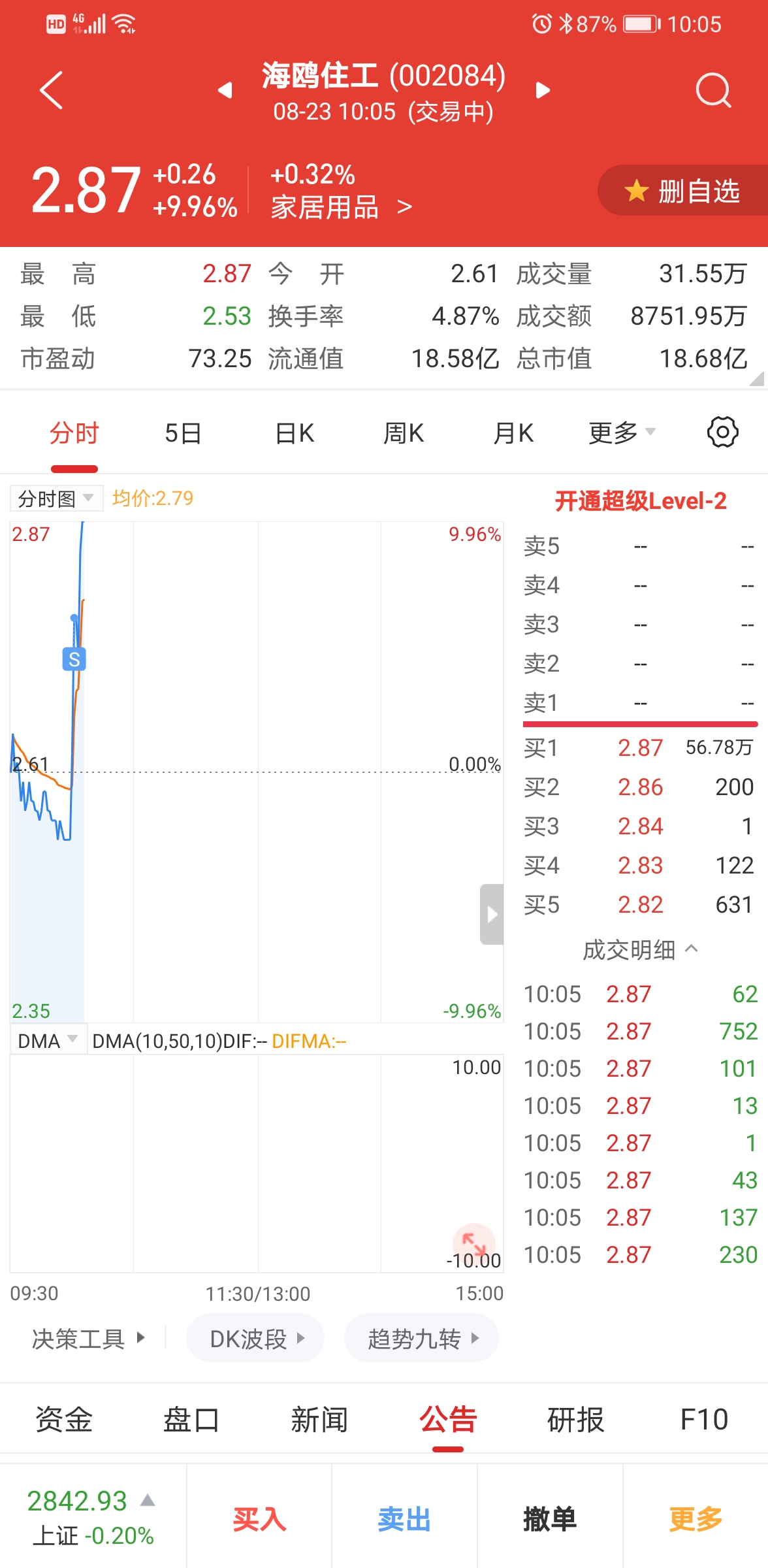 2024年第26个涨停 板,海鸥住工.涨停板截图留影纪念(第25醋化股份)