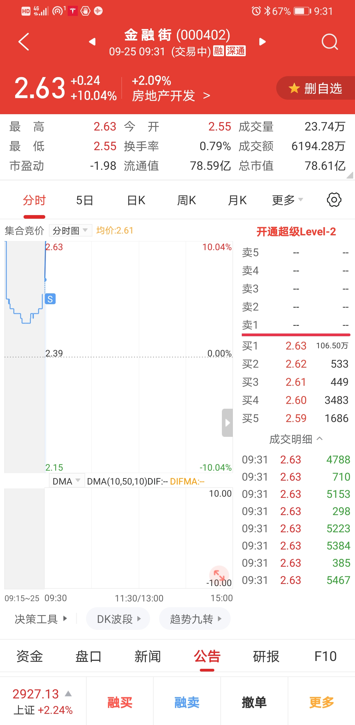 2024年第65,66,67个涨停板,金融街、福星股份、城投控股截图留影纪念,发大财了!