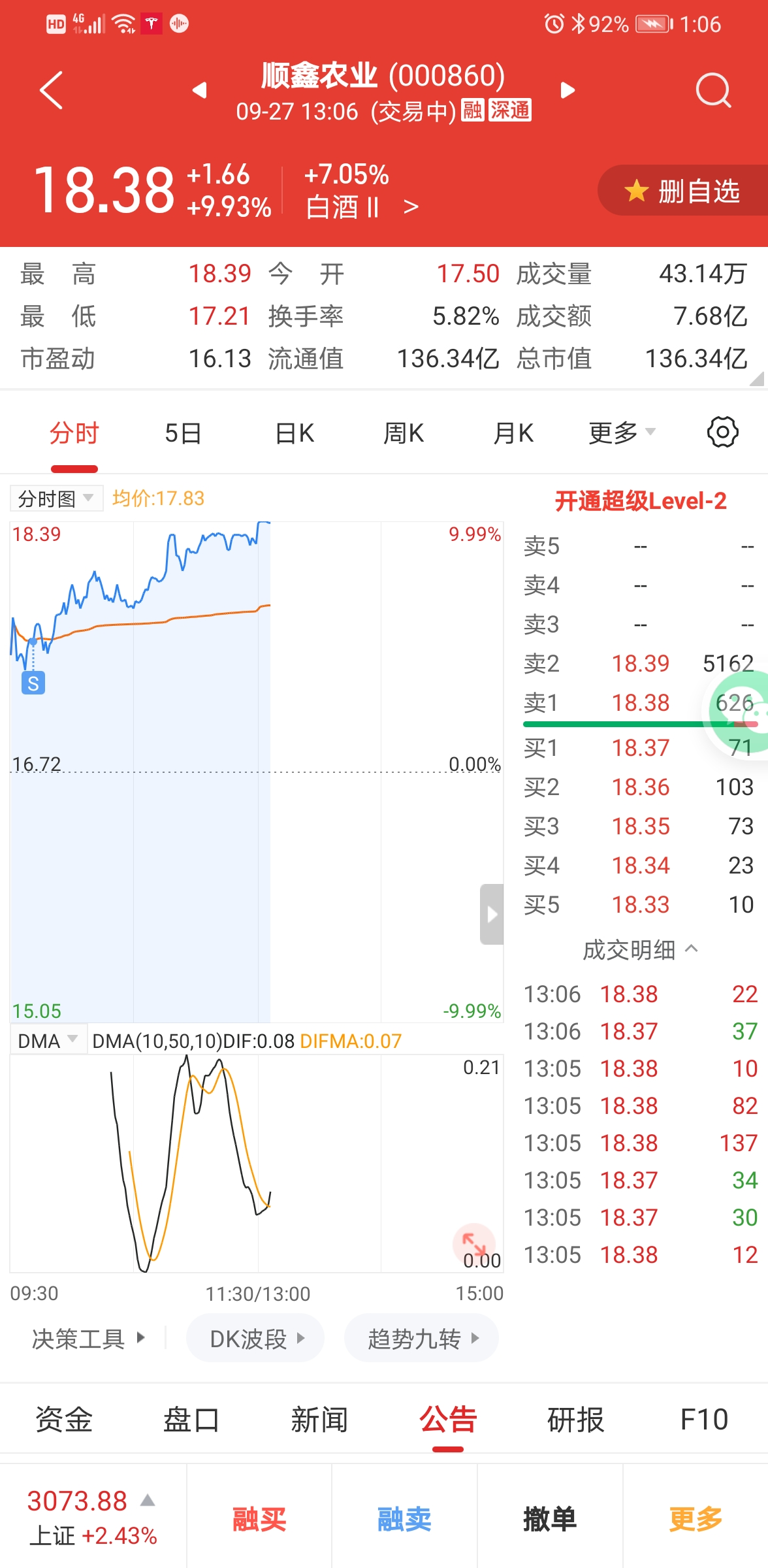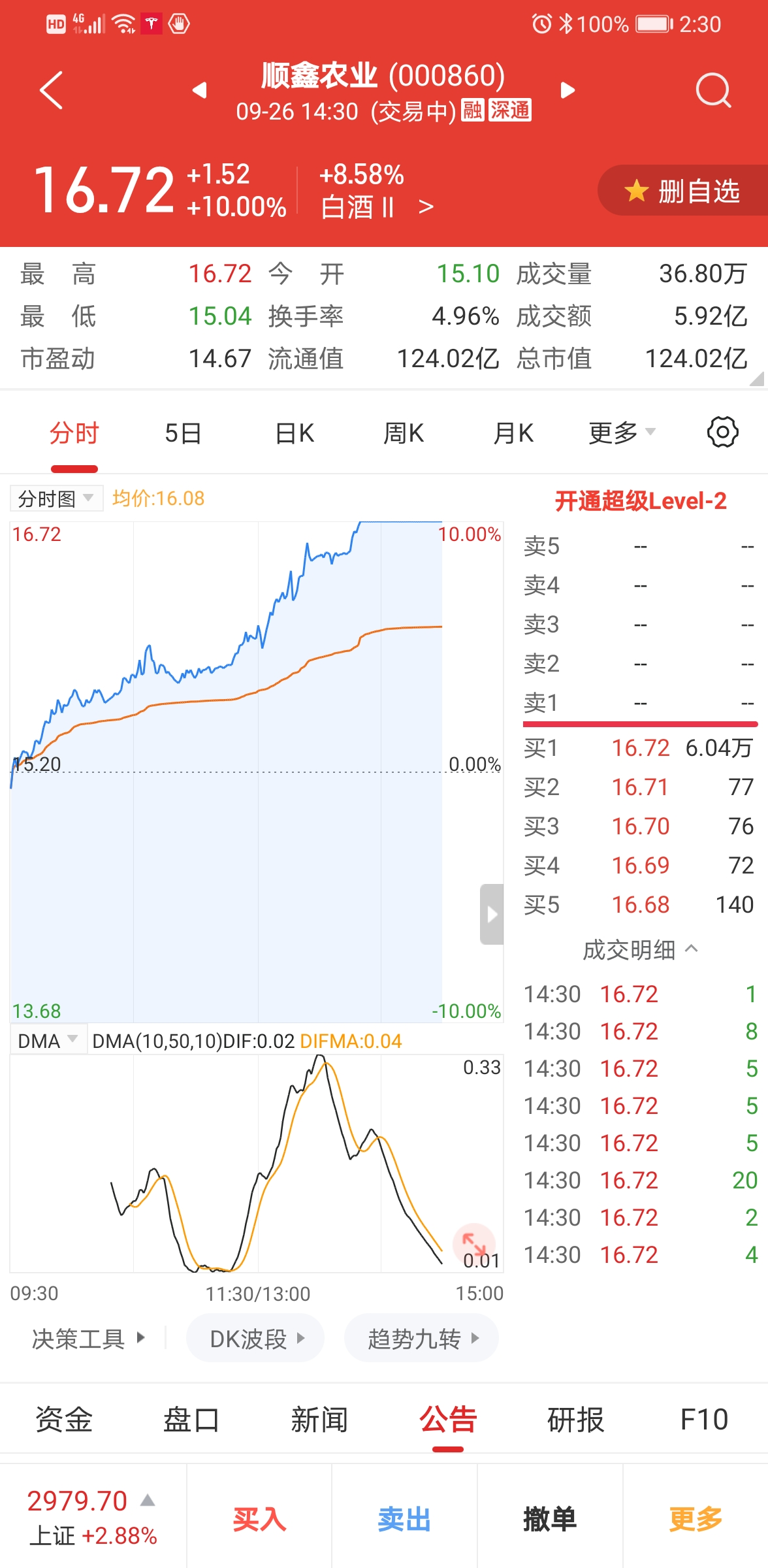 2024年第99个涨停板,顺鑫农业截图留影纪念!