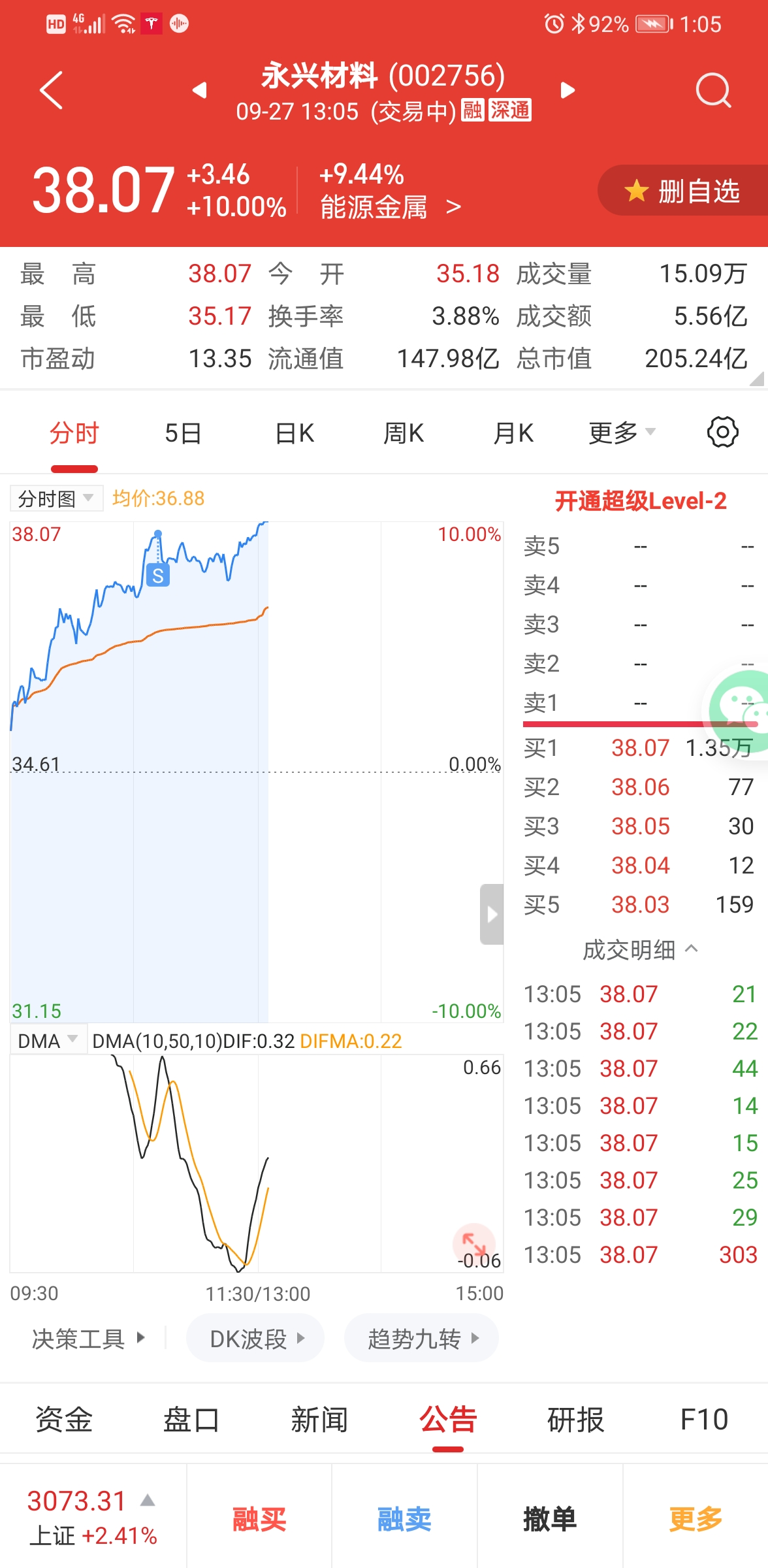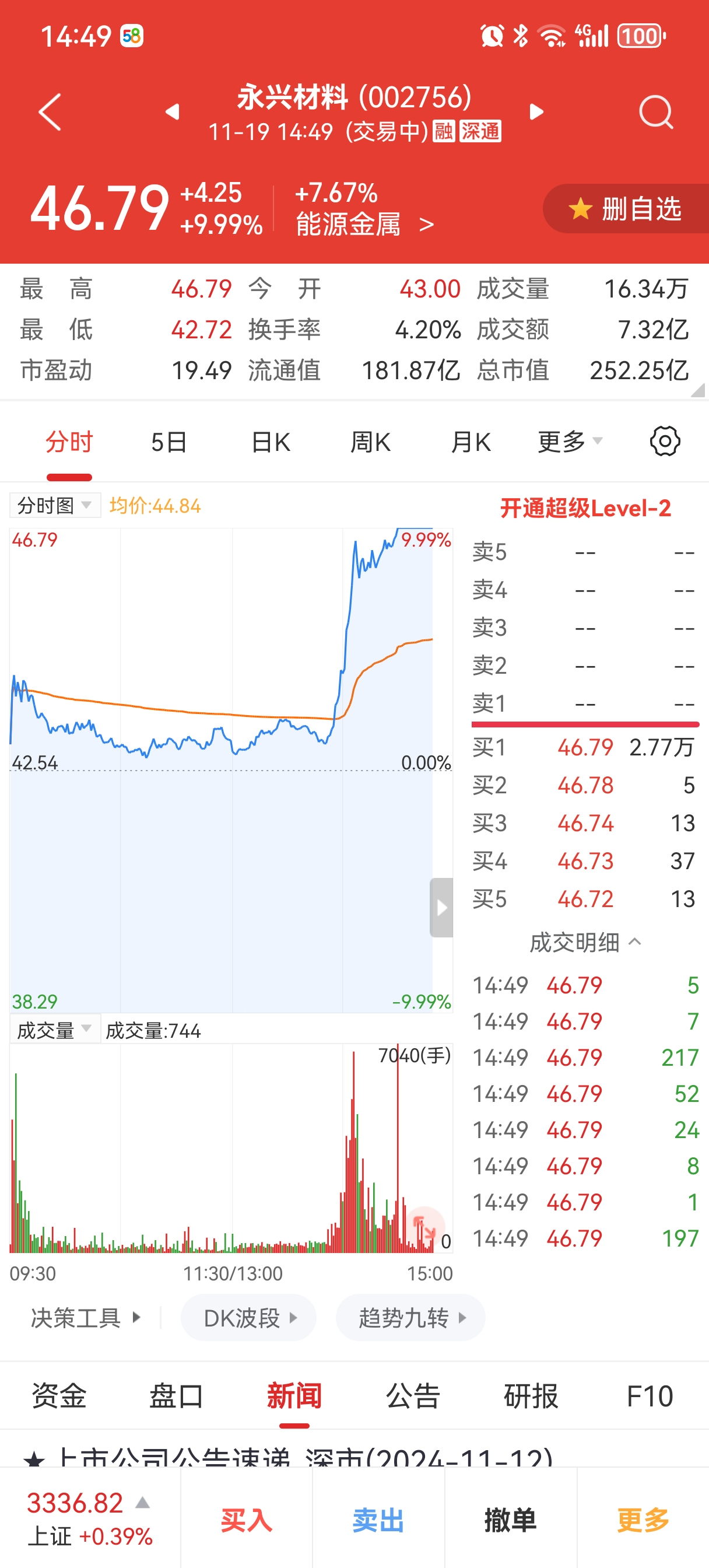 2024年第112个涨停板,永兴材料截图留影纪念!