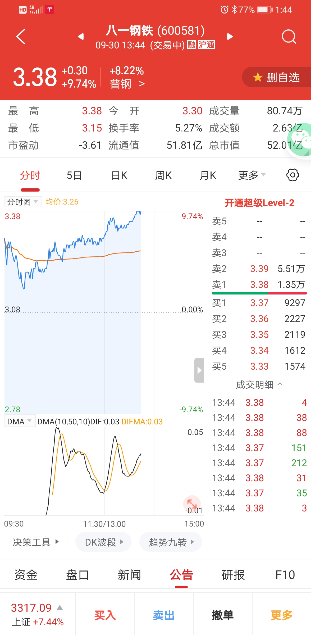 2024年第94个涨停板,八一钢铁截图留影纪念!