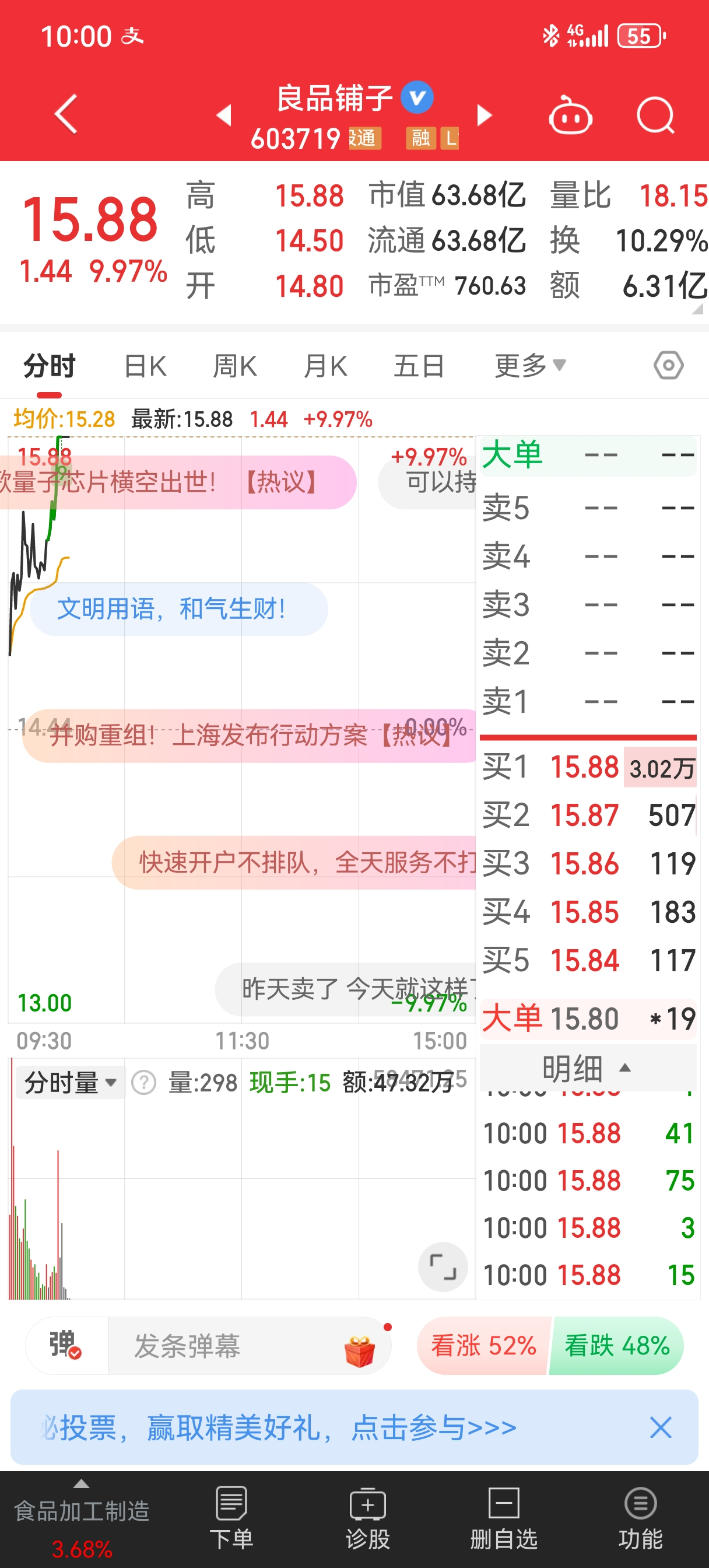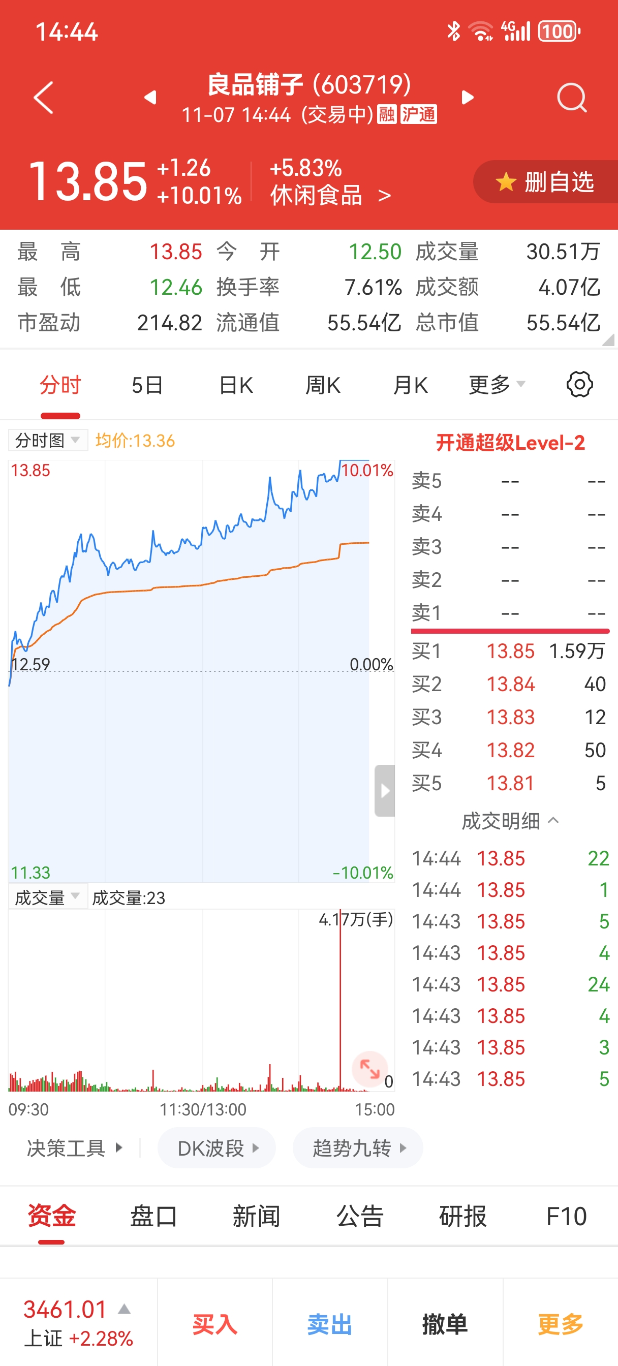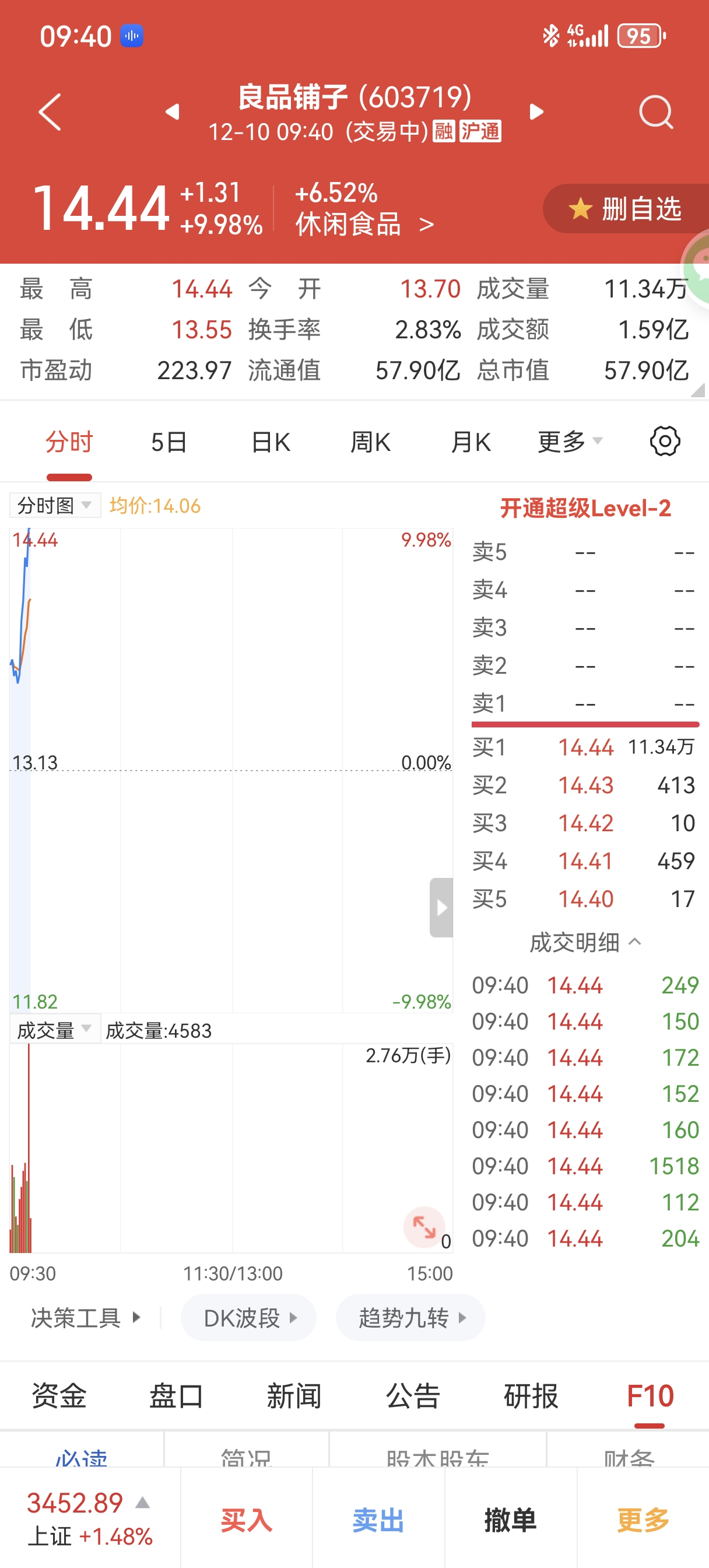 2024年第117个涨停板,良品铺子截图留影纪念!