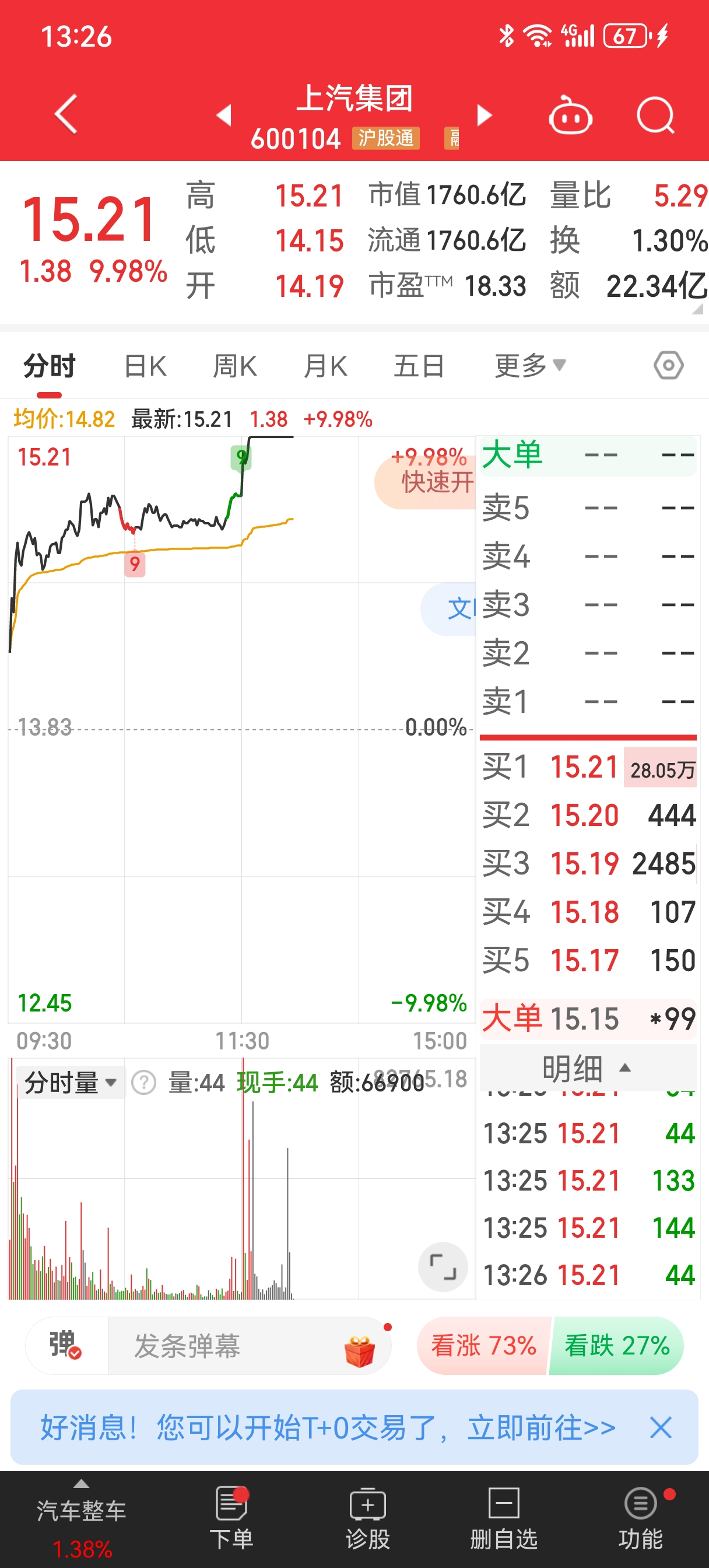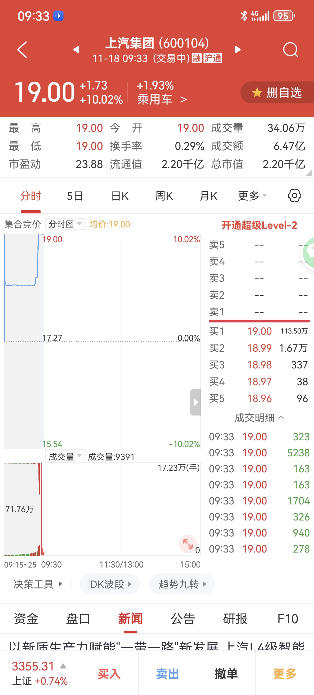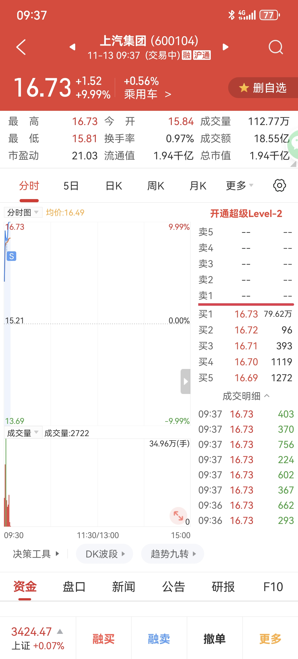 2024年第113个涨停板,上汽集团截图留影纪念!