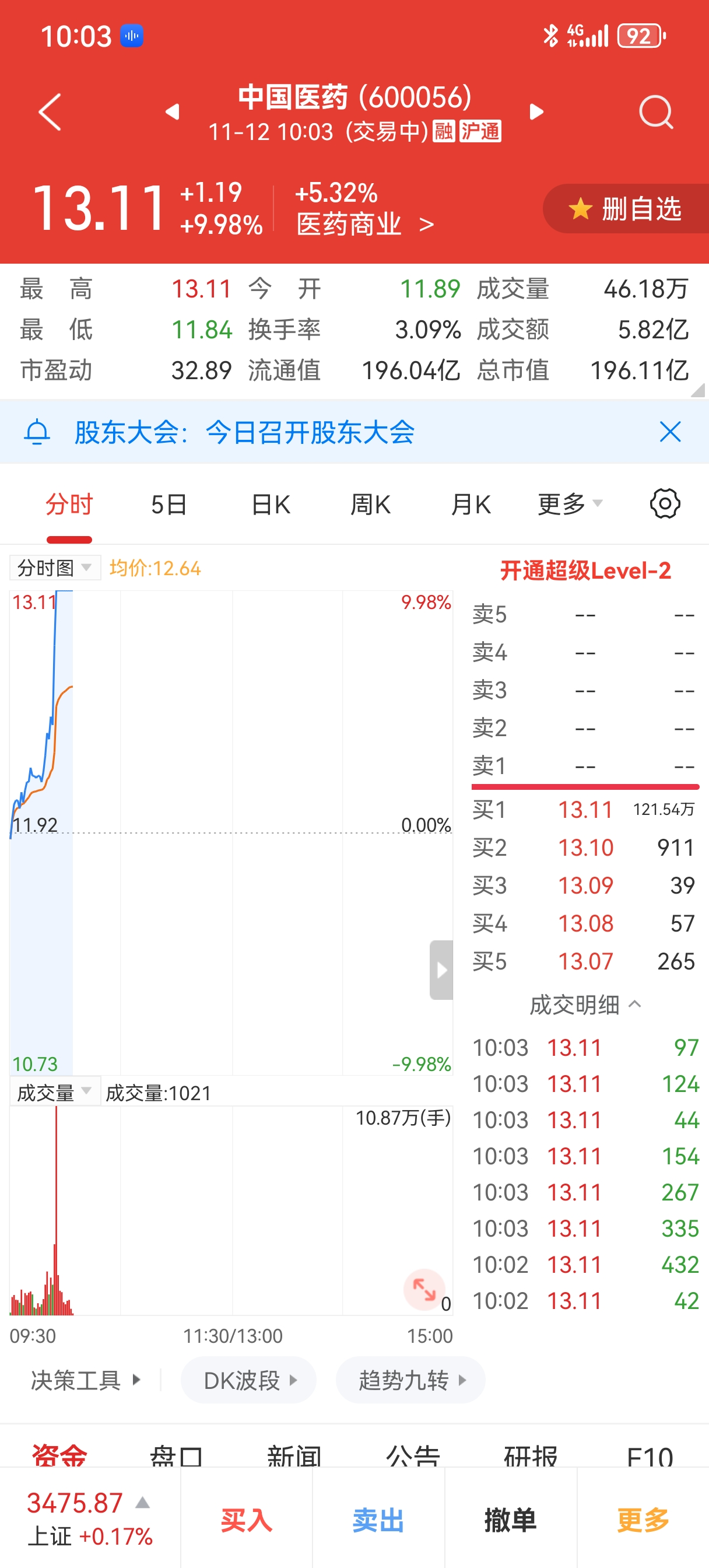 2024年第105个涨停板,中国医药截图留影纪念!轩尼诗一开,好事自然来!