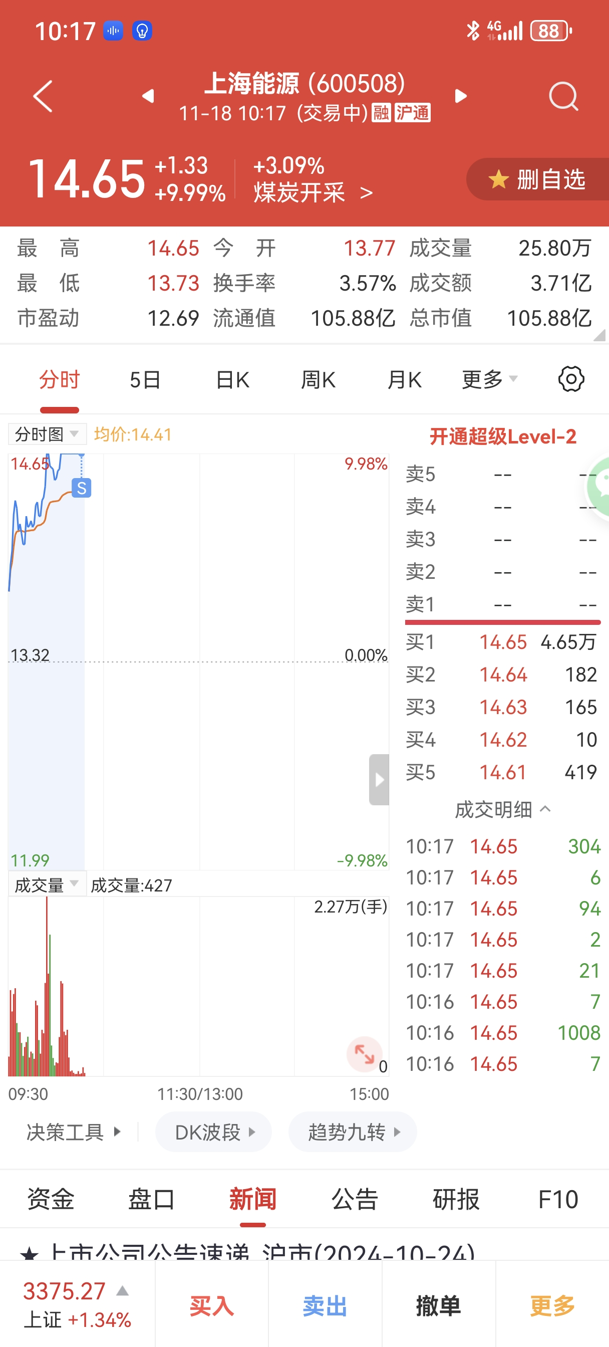 2024年第3个涨停 板,上海能源2连板截图留影纪念。