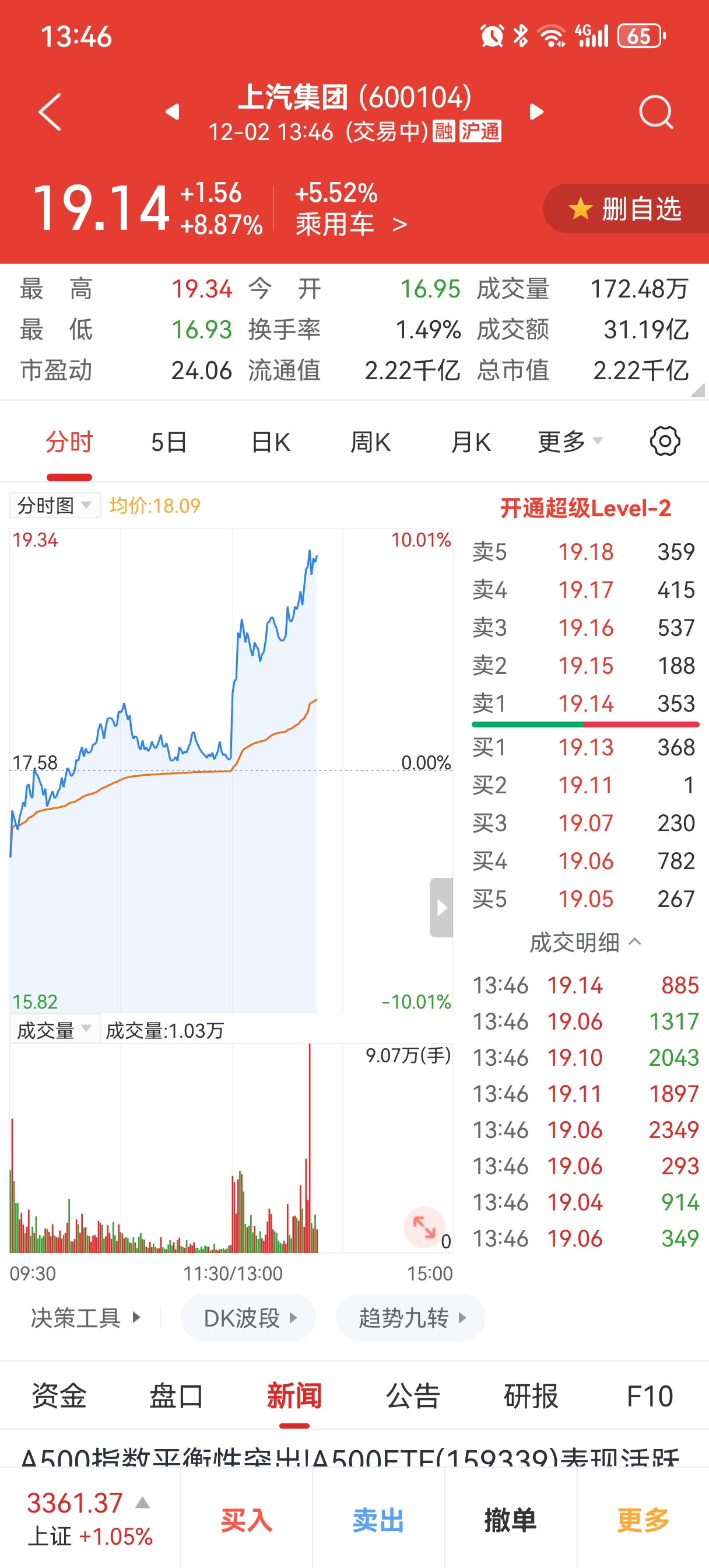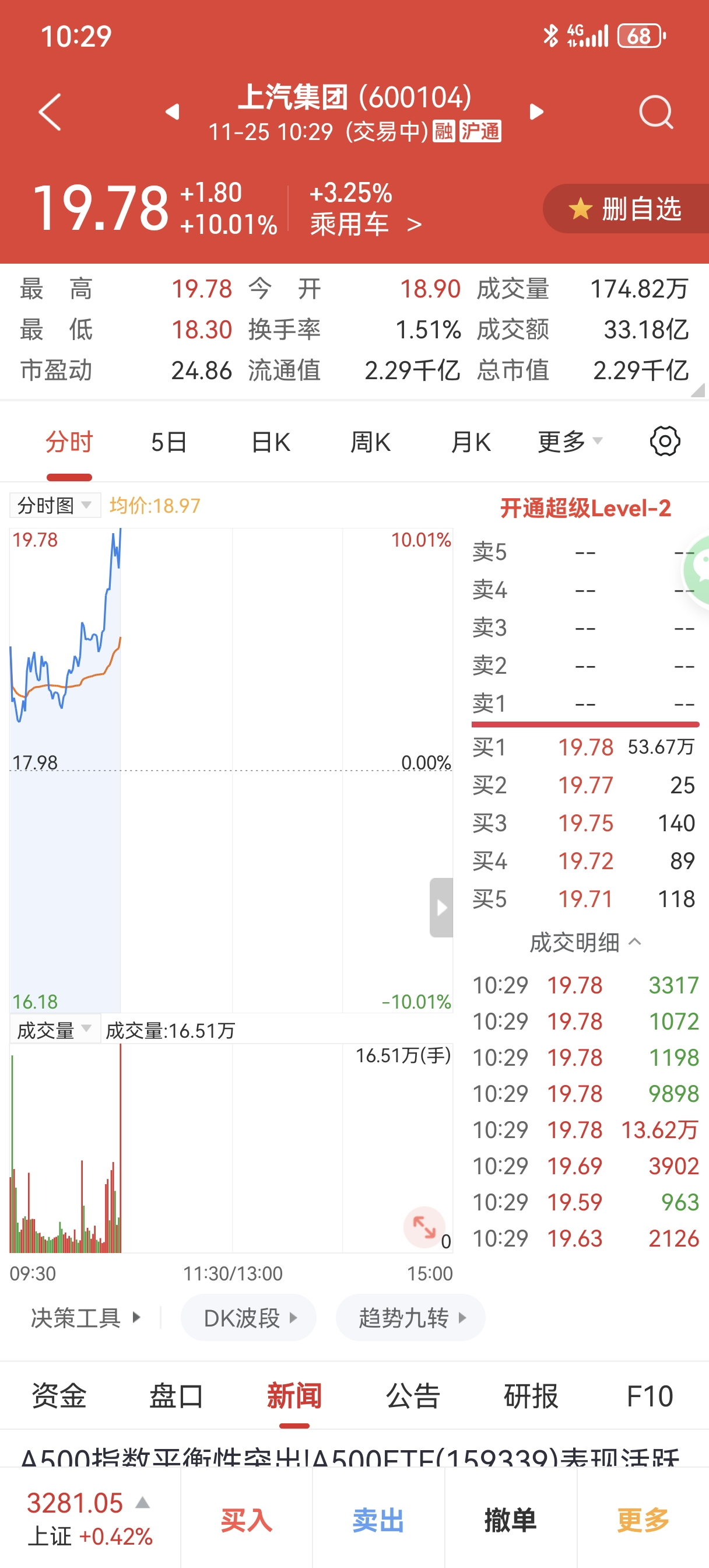 2024年第106个涨停板,上汽集团截图留影纪念!
