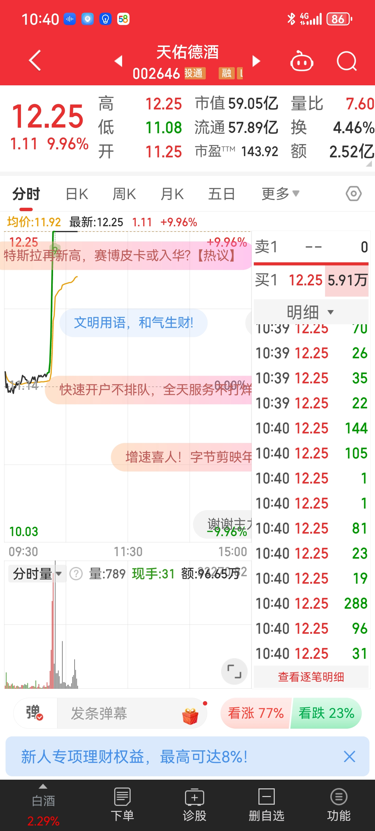 2024年第118个涨停板,天佑德酒截图留影纪念!