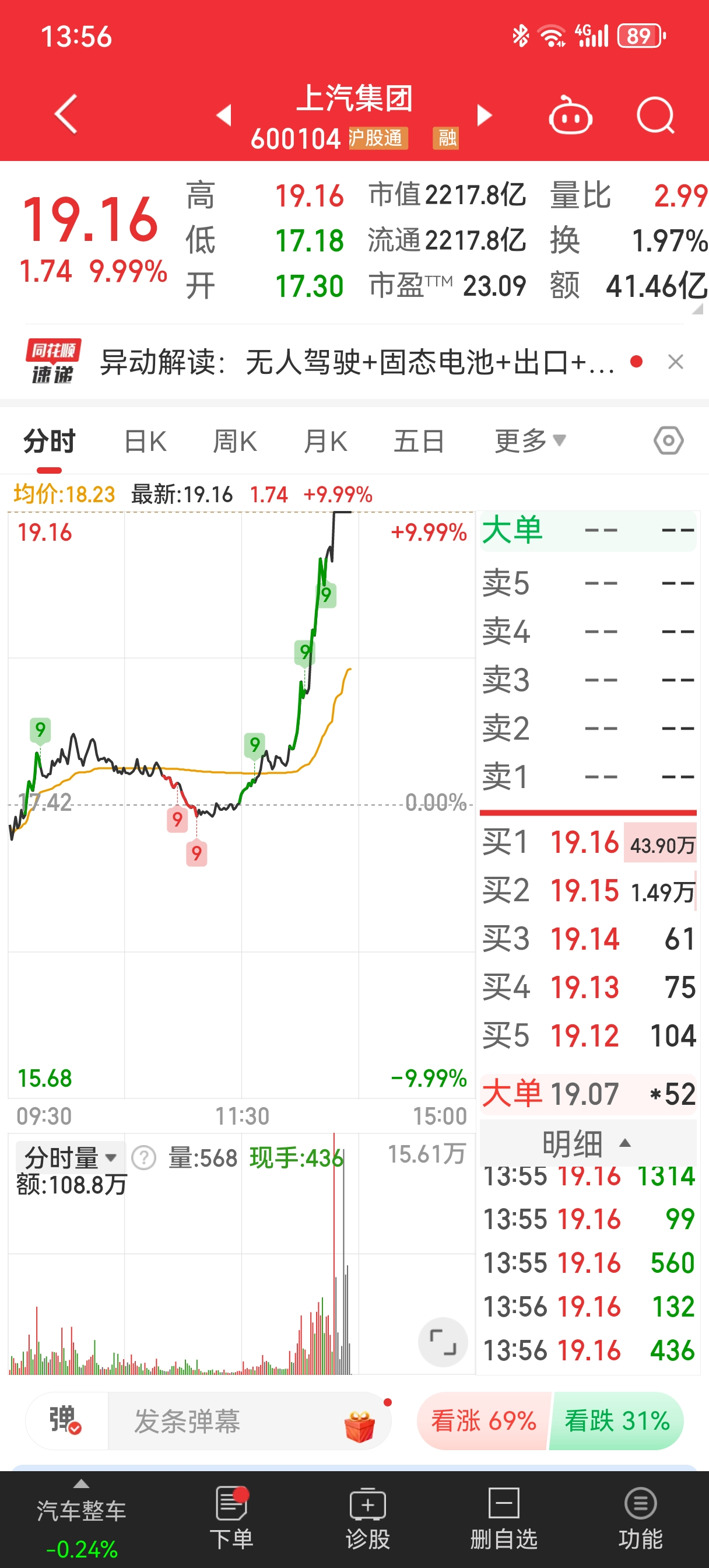 2024年第114个涨停板,上汽集团截图留影纪念!